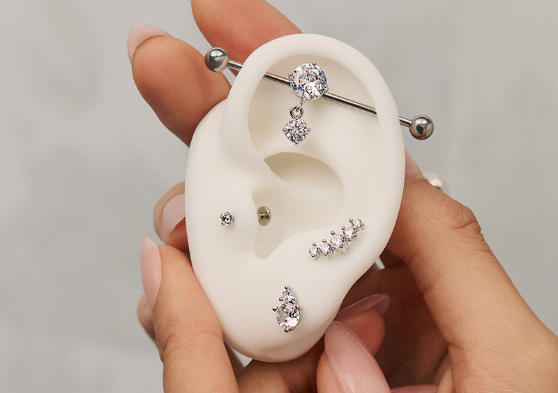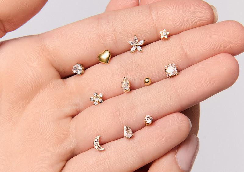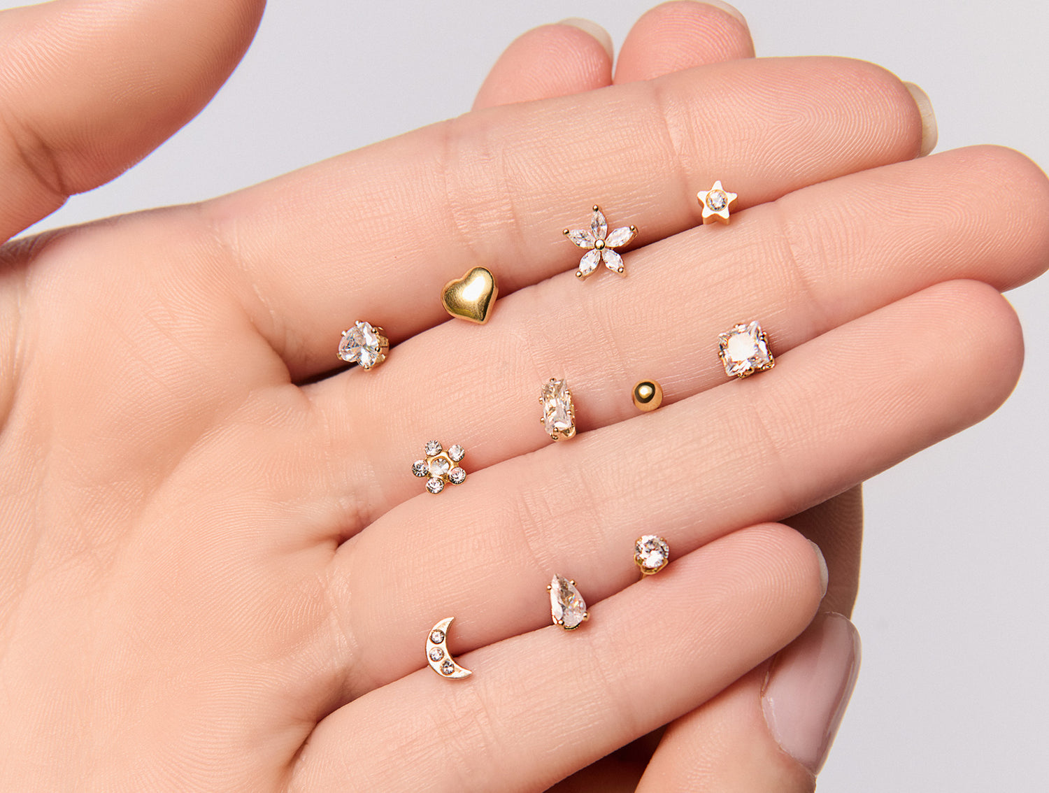 After the initial healing period, you can replace the original piercing stud(s) with other jewelry.