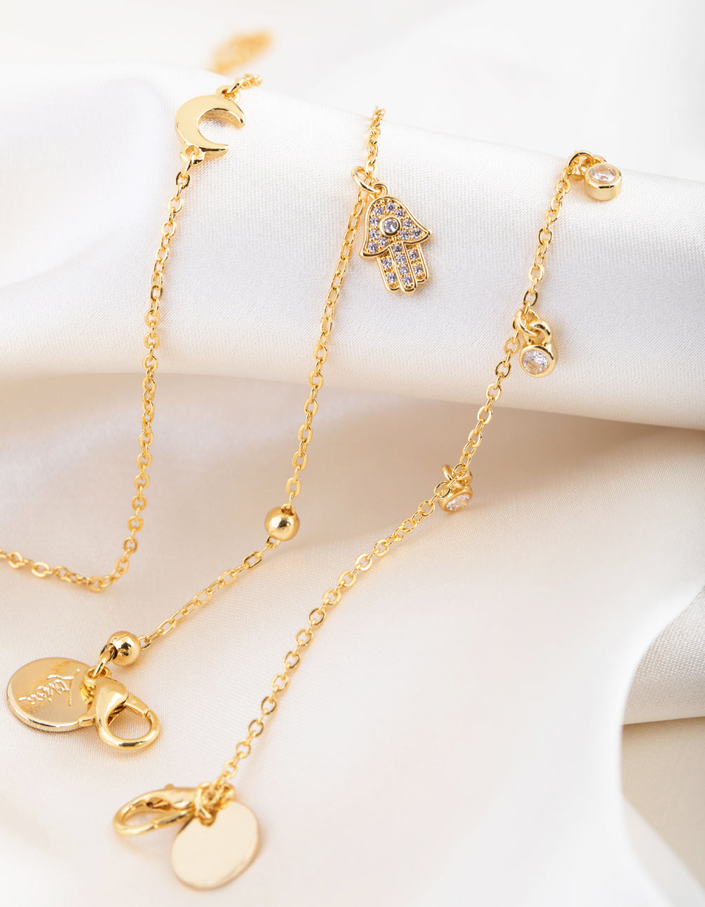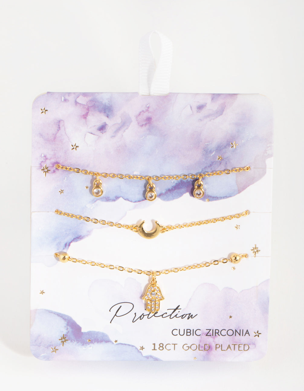 18ct Gold Plated Cubic Zirconia Hamsa & Moon Bracelet Set
