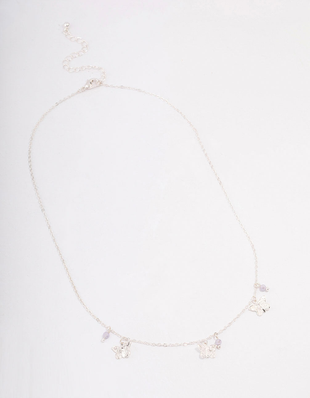 Silver Butterfly Beaded Droplet Necklace