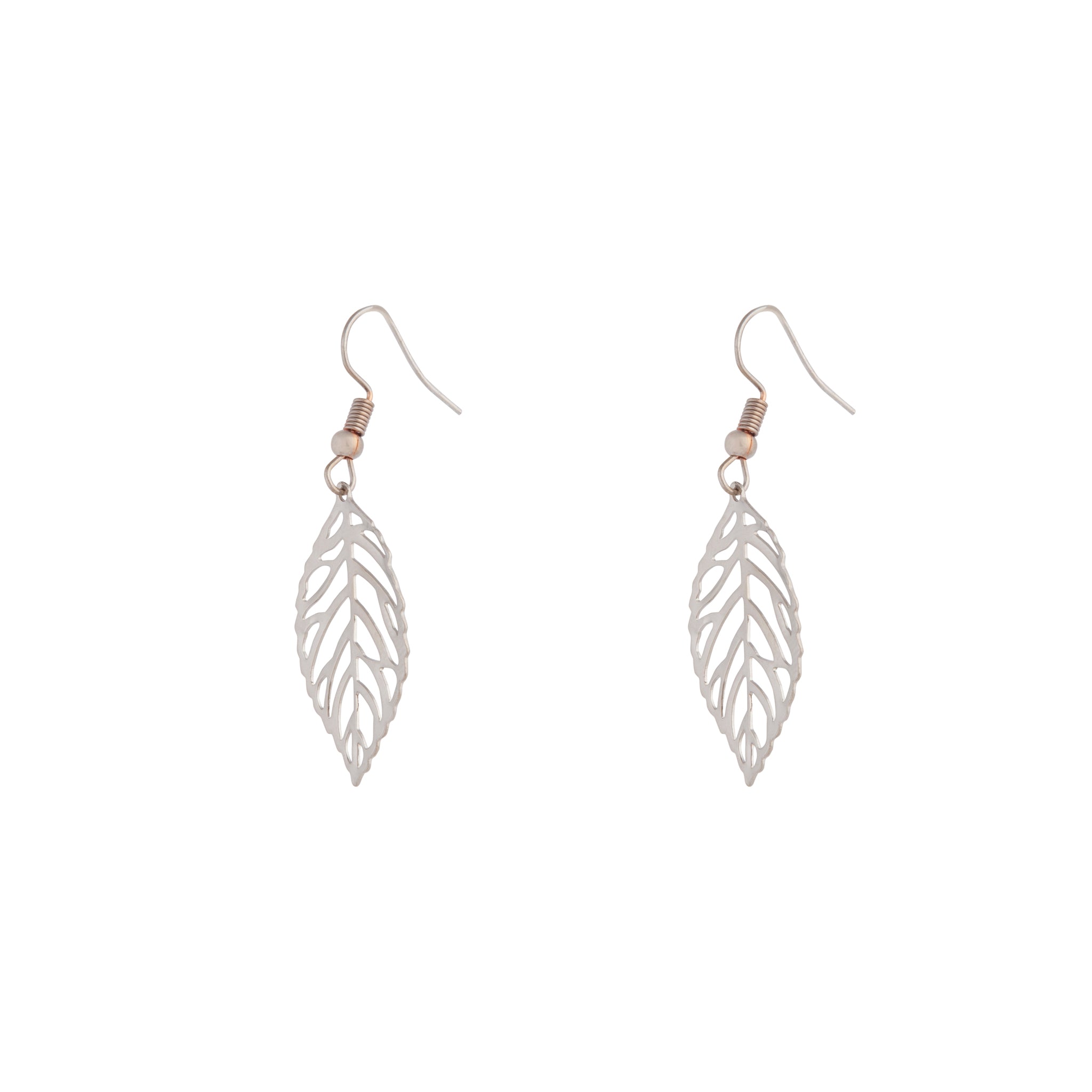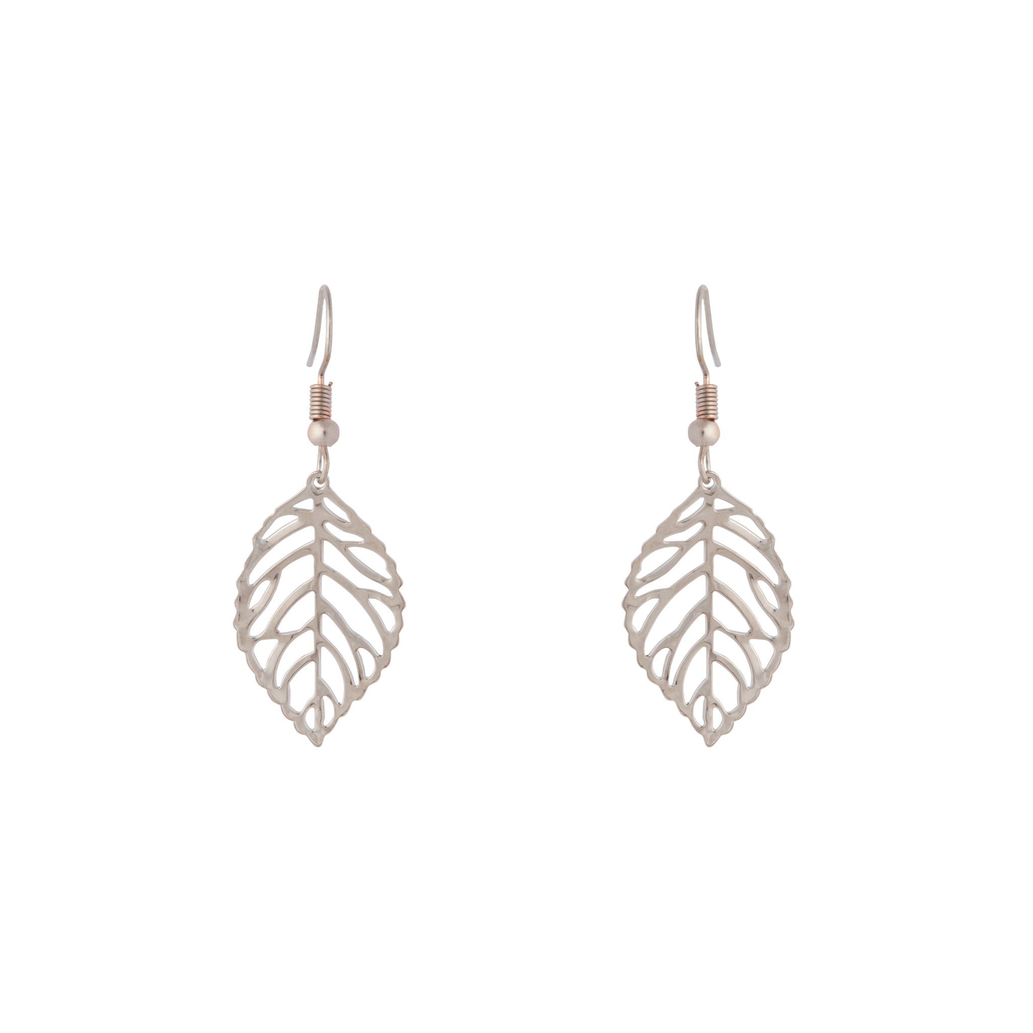 Silver Single Leaf Filigree Drop Earrings