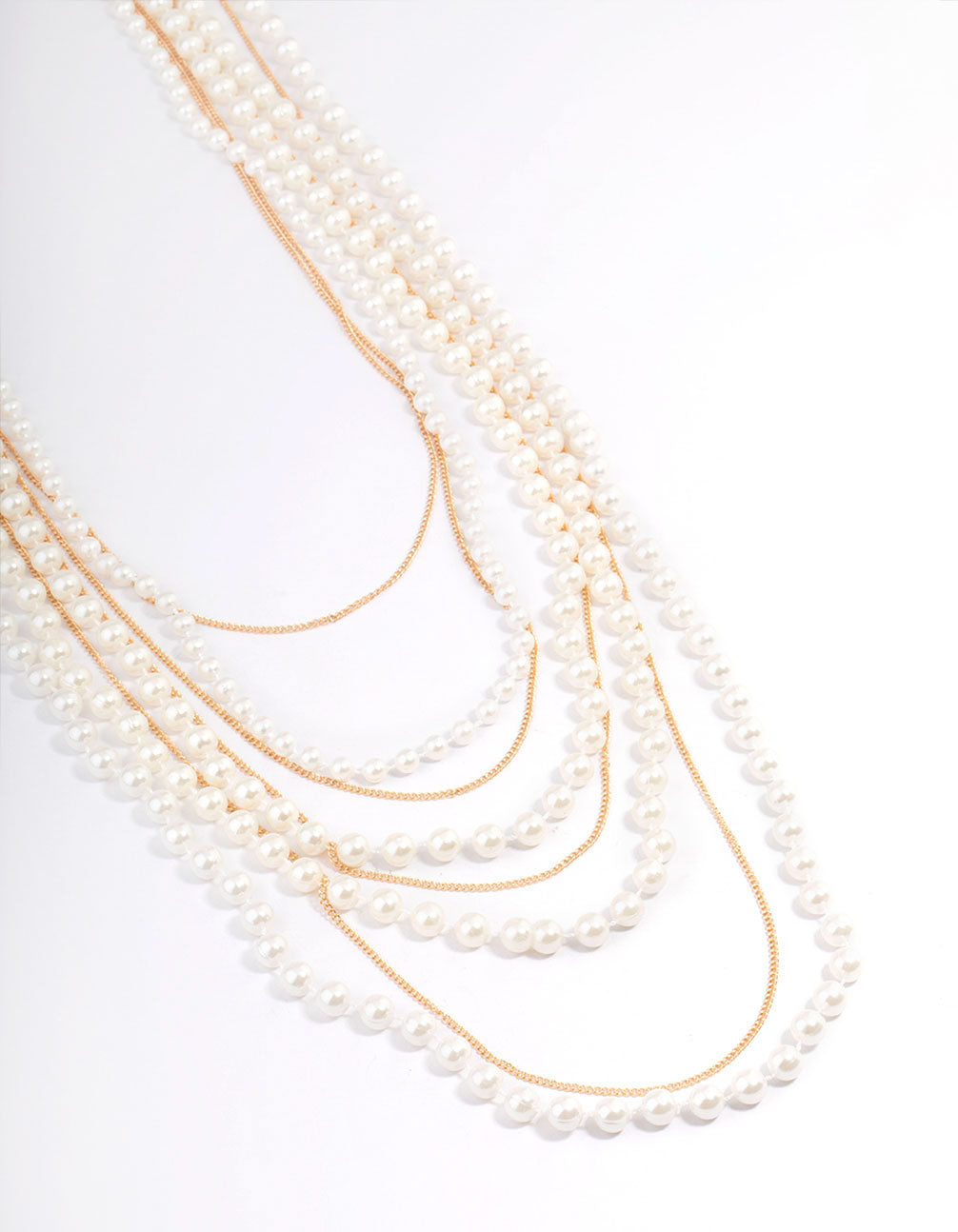 Gold Pearl Long Layered Necklace Gold Pearl Long Layered Necklace Gold Pearl Long Layered Necklace