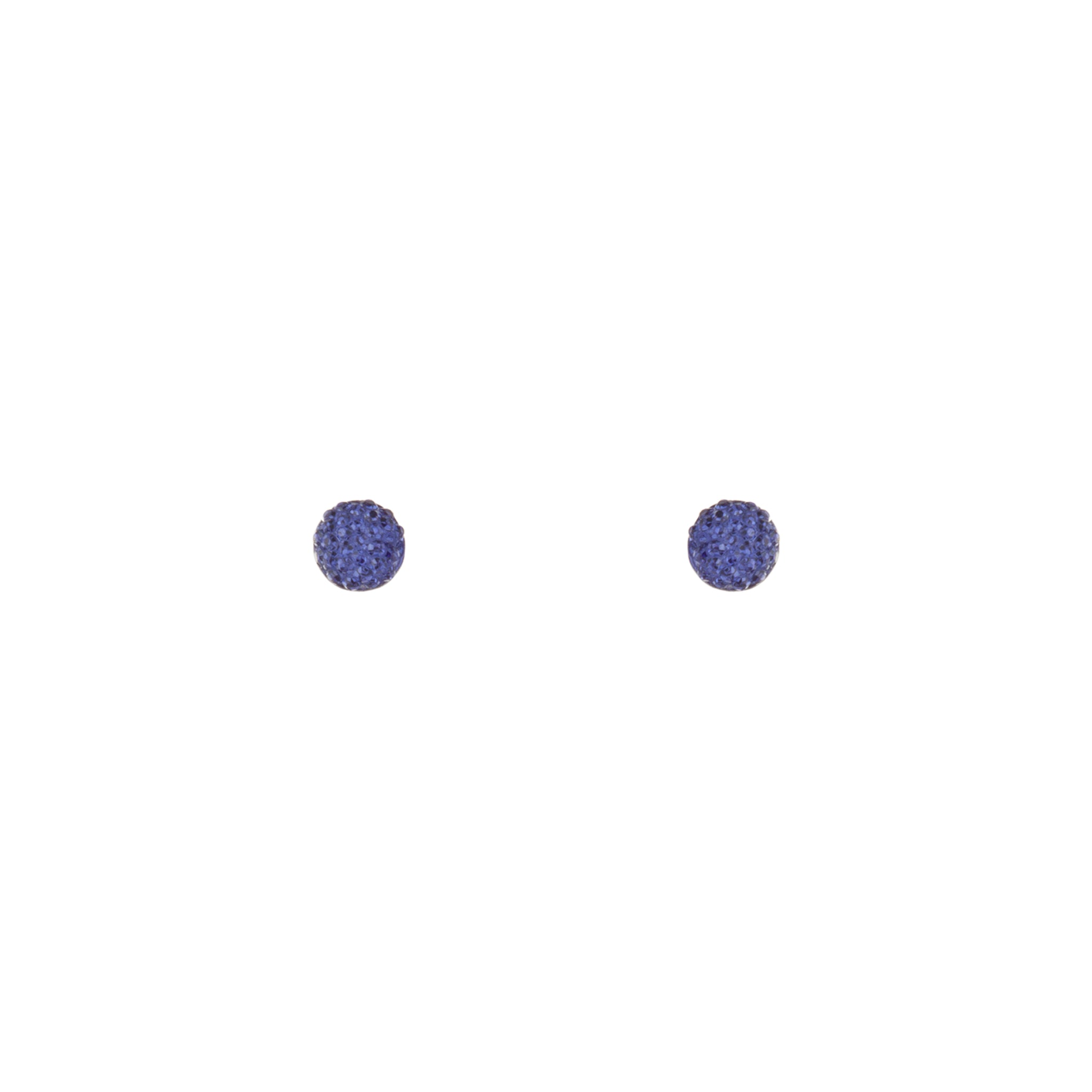 A pair of dark purple dome shaped stud earrings with diamantes.