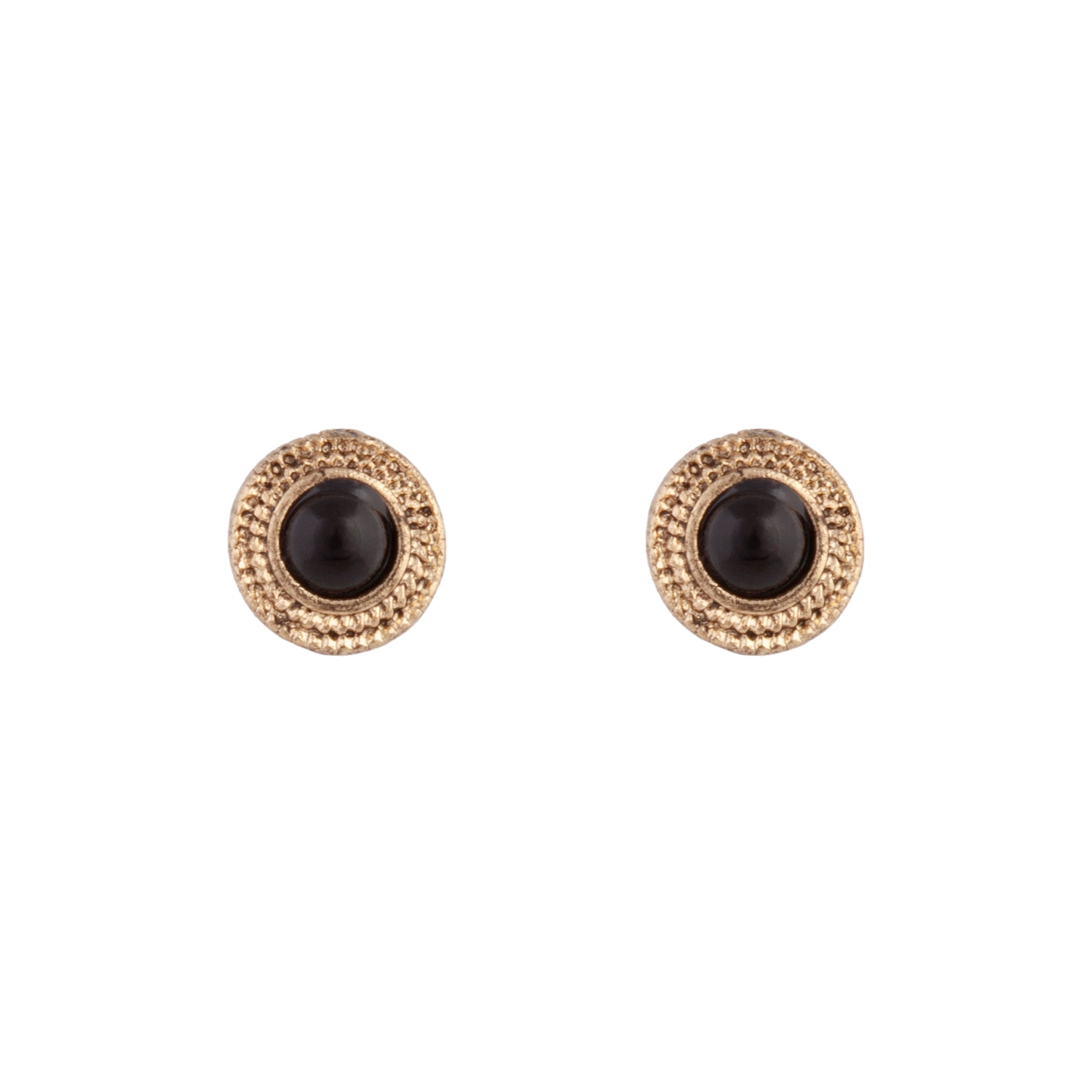 Black Gold Stone Circle Stud Earrings