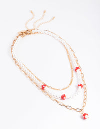Gold Row Pearl Mushroom Necklace