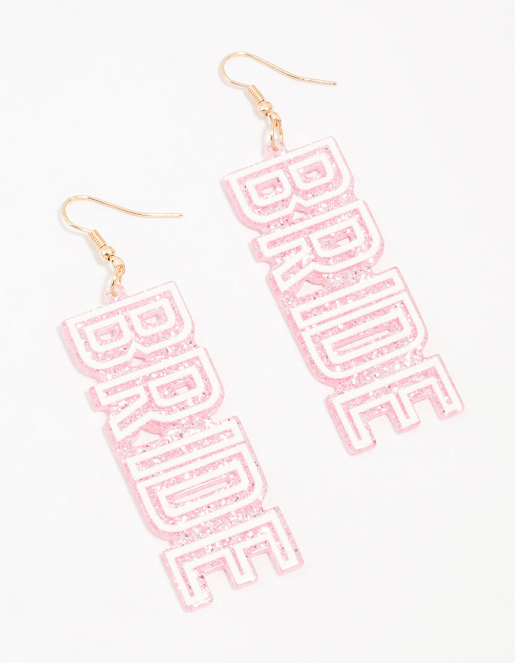 Celebrate your big day with these fabulous "Bride" earrings. With a playful design bursting with joy and confetti, they're the ultimate accessory for your bachelorette party. Get ready to sparkle and shine as you toast to the bride-to-be in style.