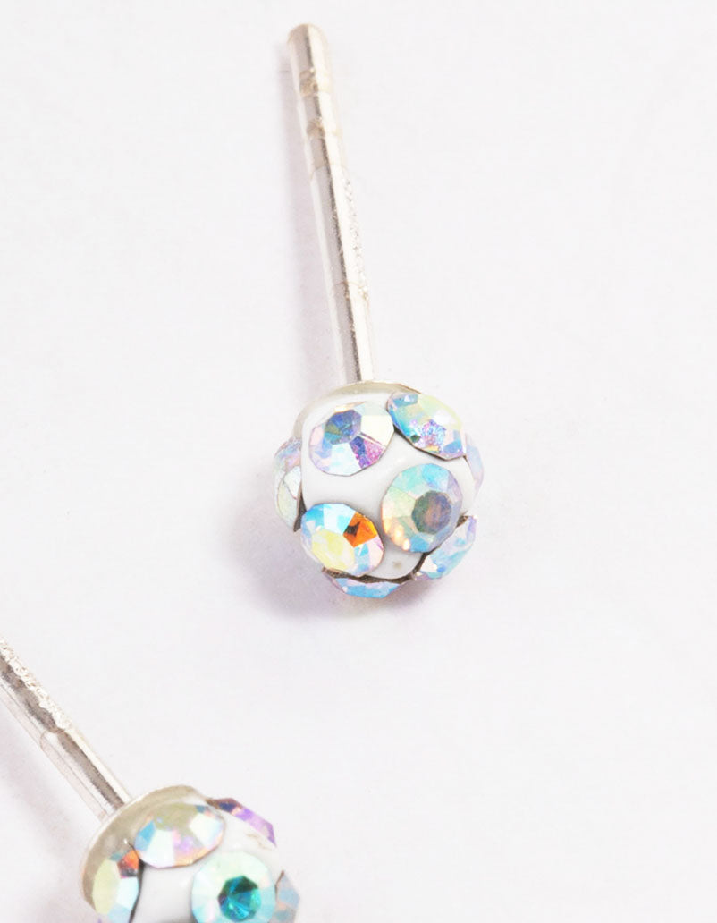 Sterling Silver 4mm Pave Ball Stud Earrings