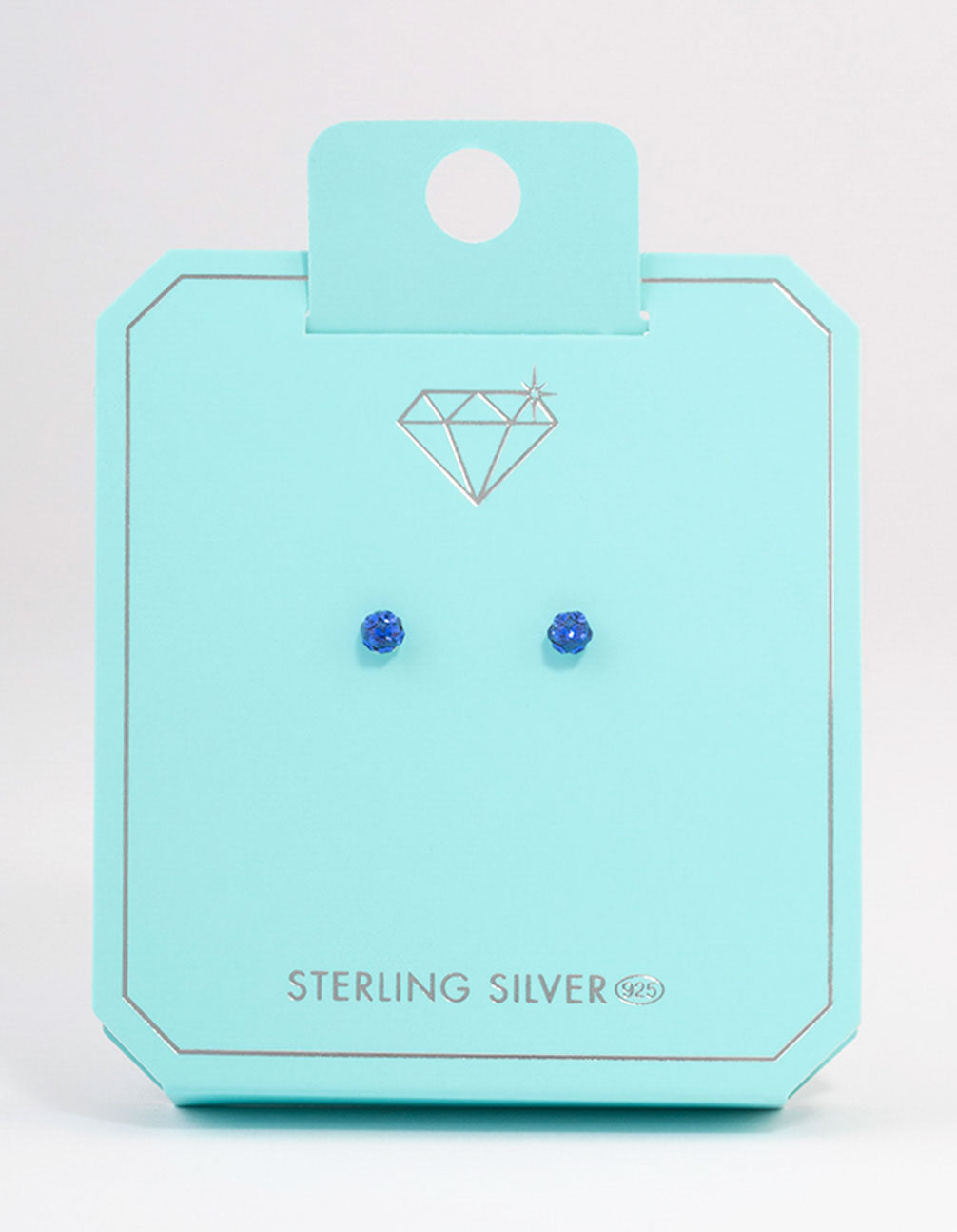 Sterling Silver Blue Pave Stud Earrings 4mm