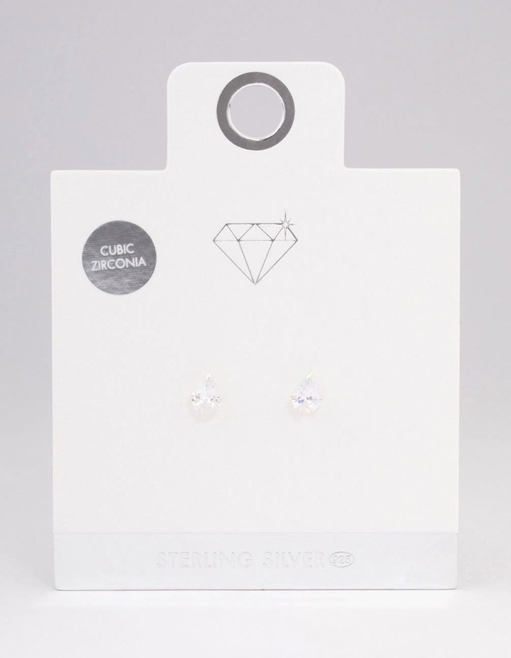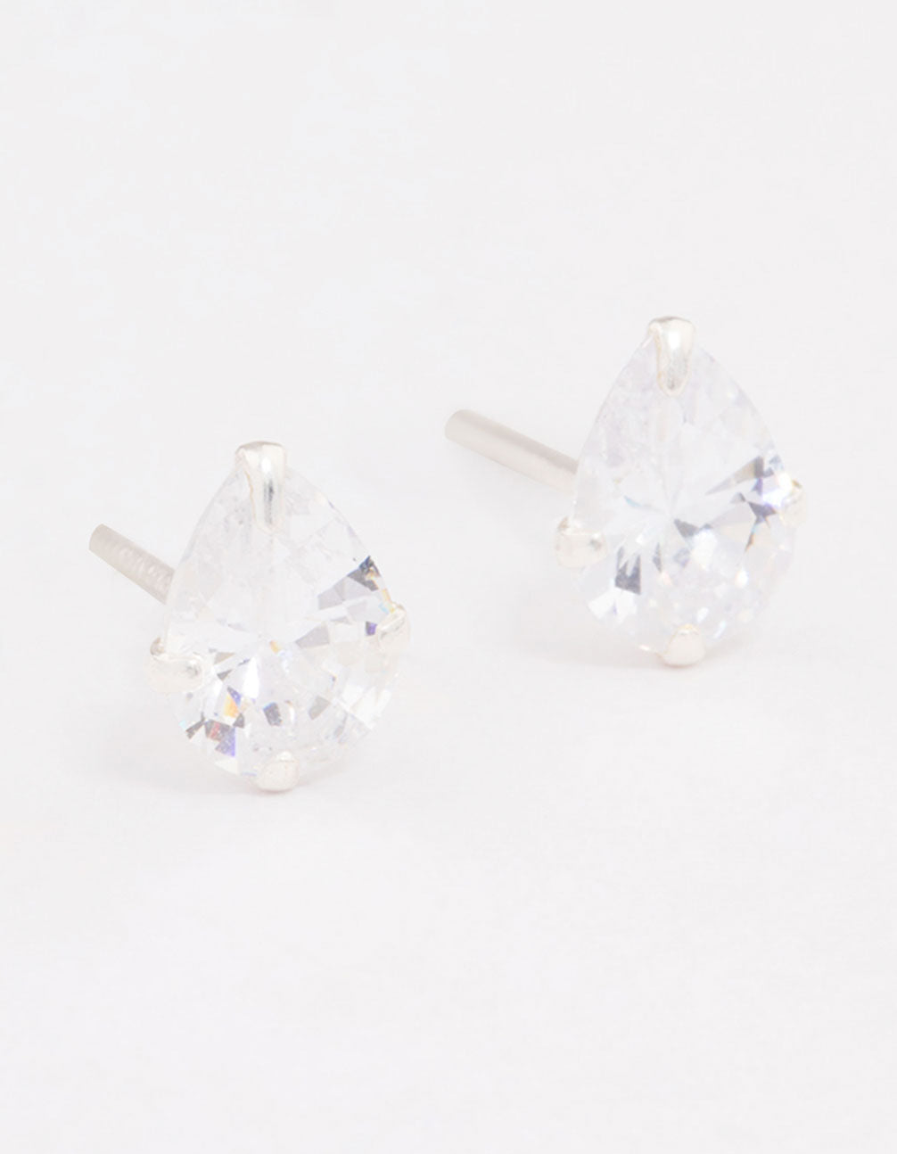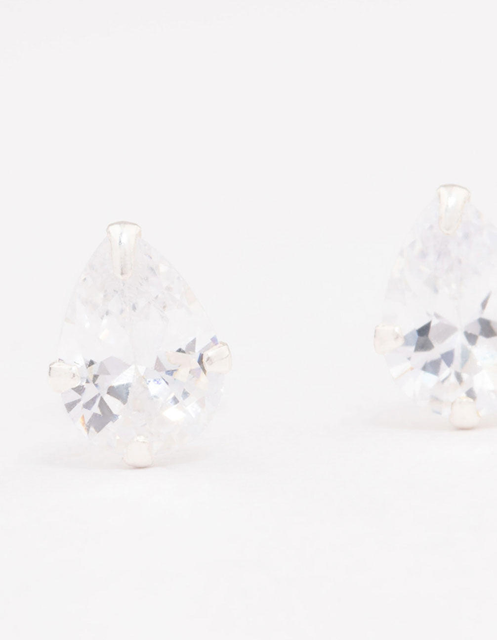 - This set of staple sterling silver stud earrings features cubic zirconia crystals in a timeless pear shape for a classic look.