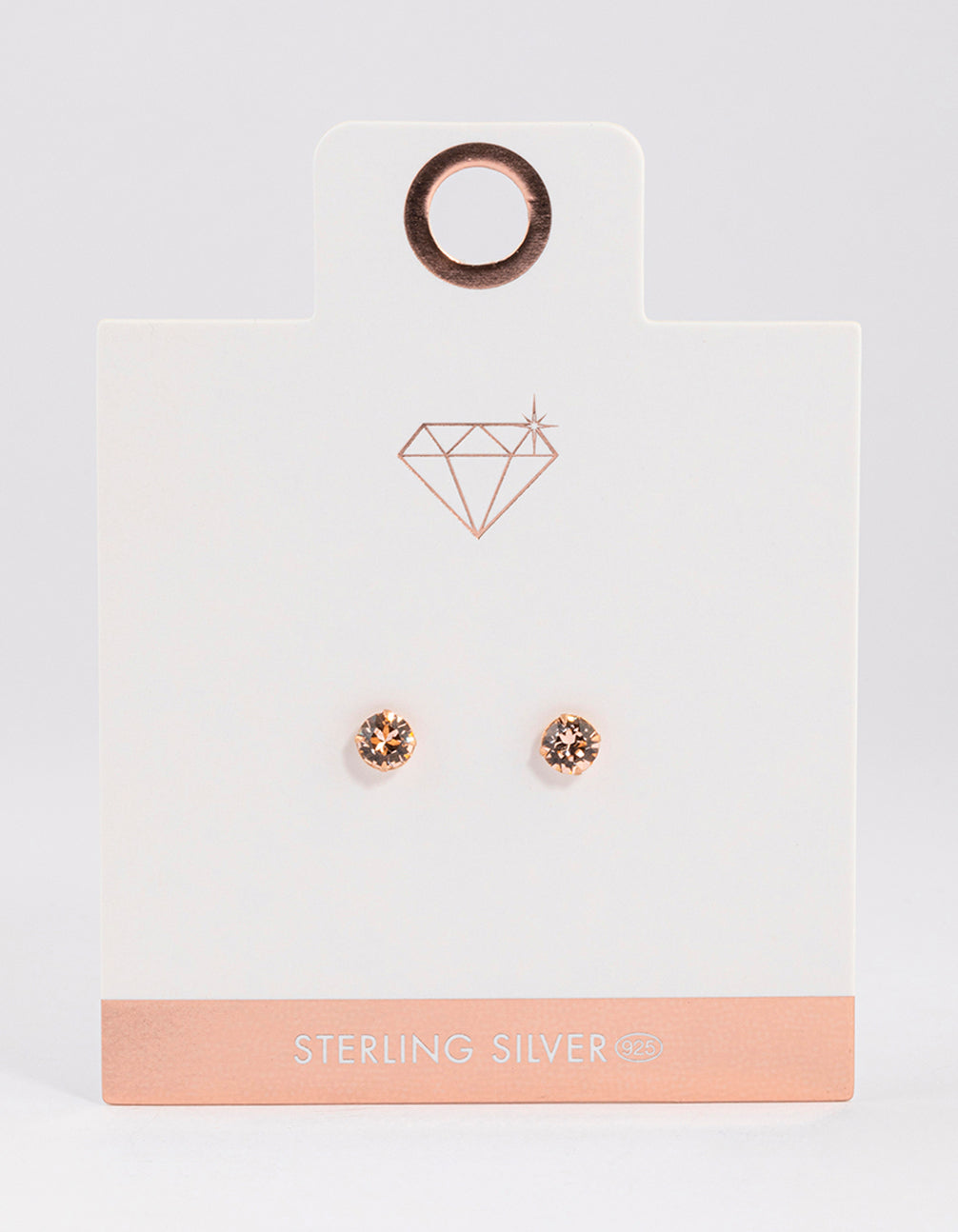 Rose Gold Plated Sterling Silver Diamante Stud Earrings 5mm