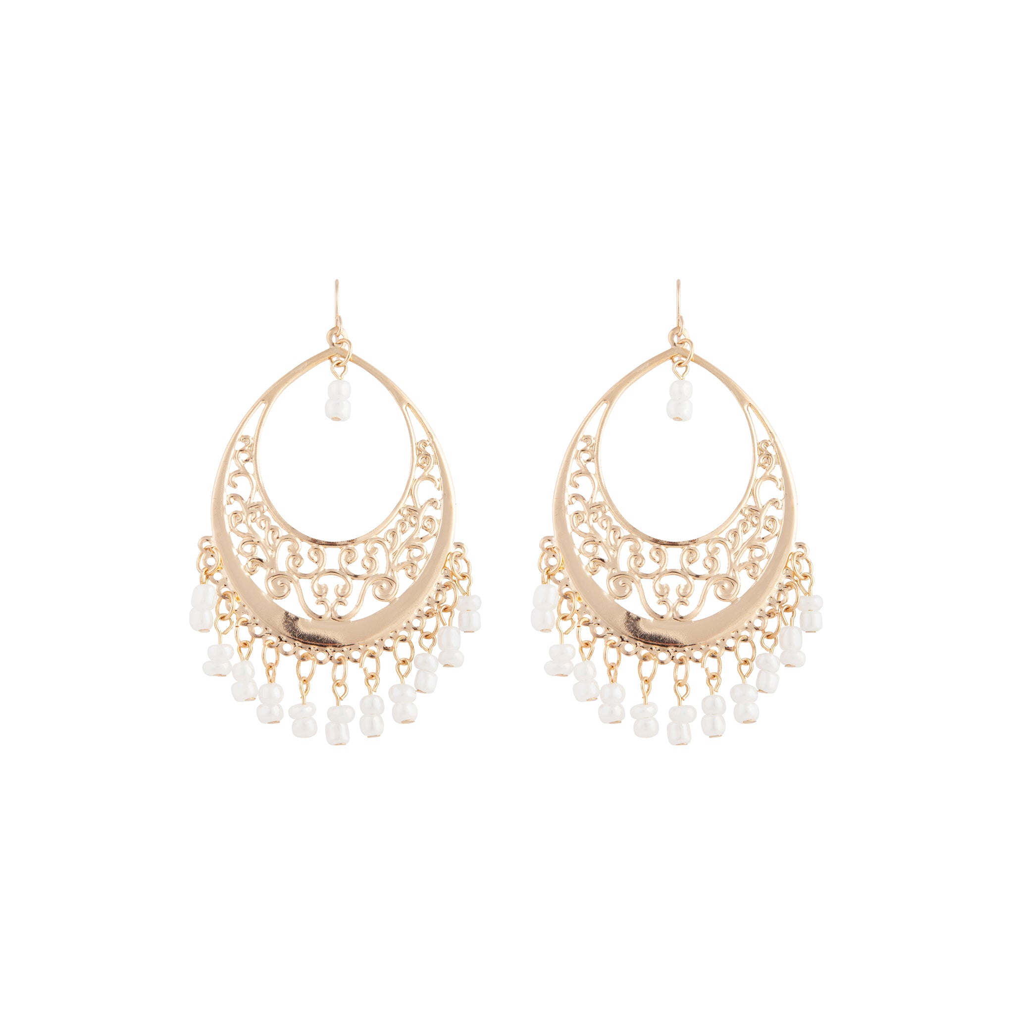 You better shape up! Enhance your look with these gold-toned teardrop earrings featuring an intricate design and white beads. Elevate a casual outfit with this essential must-have earring set.