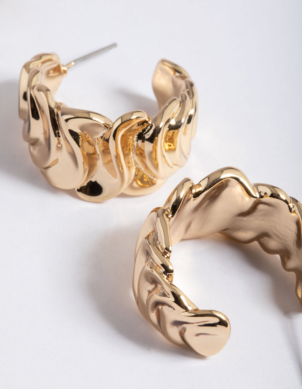 Gold Plated Brass Medium Molten Hoop Earrings