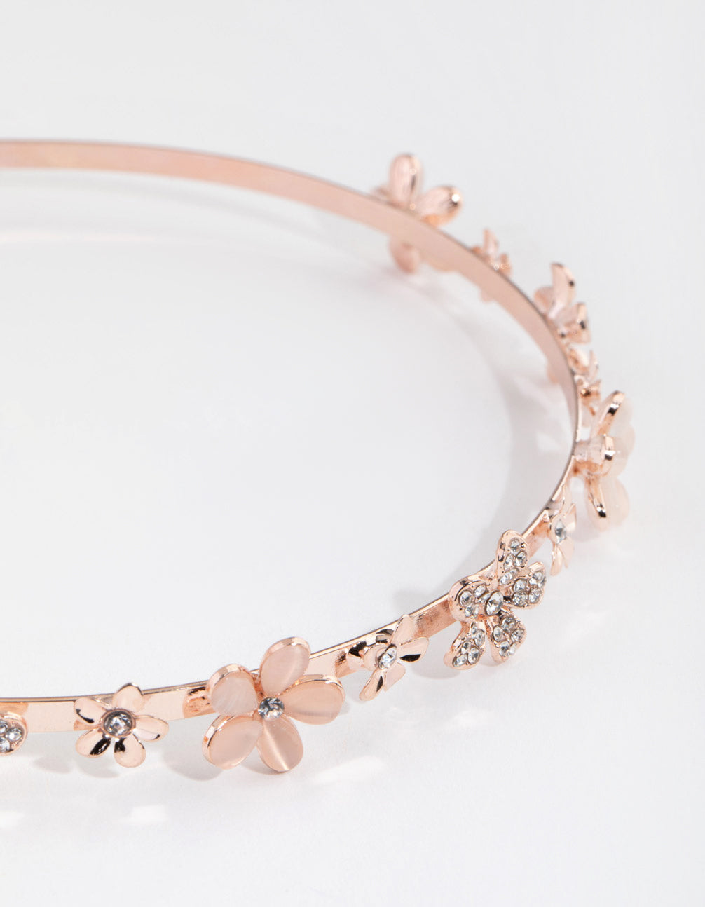 Add a touch of whimsy to your outfit with glittering hair accessories. This beautiful rose-gold toned headband is studded with diamante-and-bead encrusted flowers in a mix of blush and crystal tones. Wear it and get noticed!