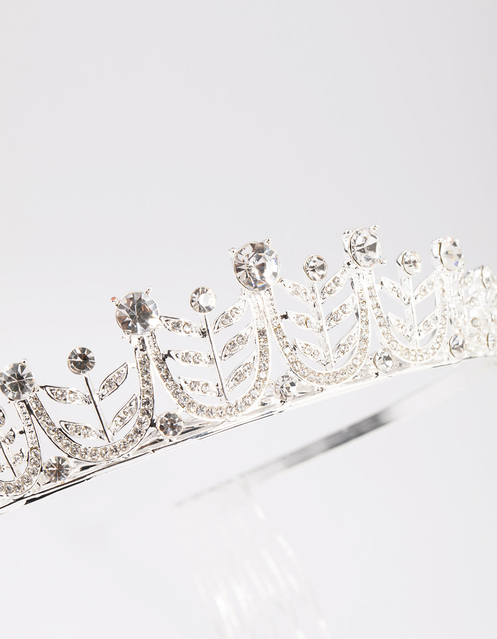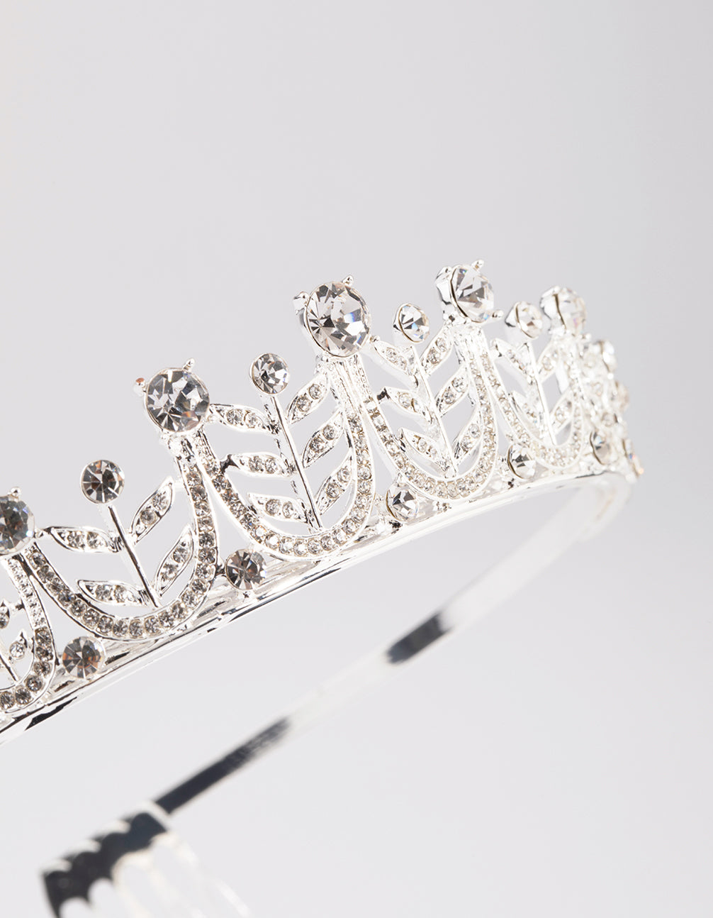 - Elevate your hairstyle with this silver-toned, leaf crown - embellished with delicate diamantes for a glamorous finish.
