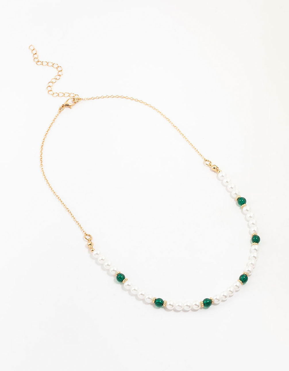 Add a playful pop of colour to your jewellery collection with this Pearl & Green Beads Necklace. This beaded necklace features a stunning mix of circular pearls and vibrant green beads, creating a fresh and eye-catching design. Perfect for layering with other necklaces or wearing solo, it's a versatile piece to take you from brunch to beach days. Pair it with a flowy dress for a boho vibe, or layer it over a crisp white shirt for a chic, modern twist. Whether you're accessorising for a casual day out or adding a fun touch to your evening look, this necklace is the ideal blend of classic and contemporary.