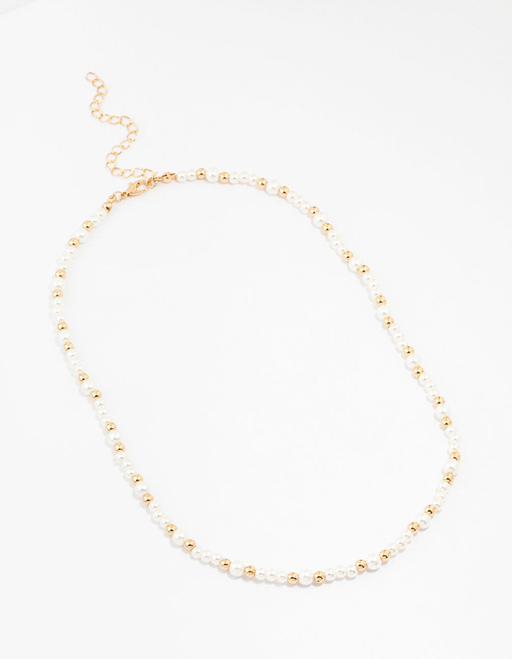 Rock a simple yet elegant look with this Beaded Gold and Pearl Necklace. This beautiful beaded necklace features gold beads and pearls for a timeless and sleek look Perfect for everyday wear or dressing up any outfit.