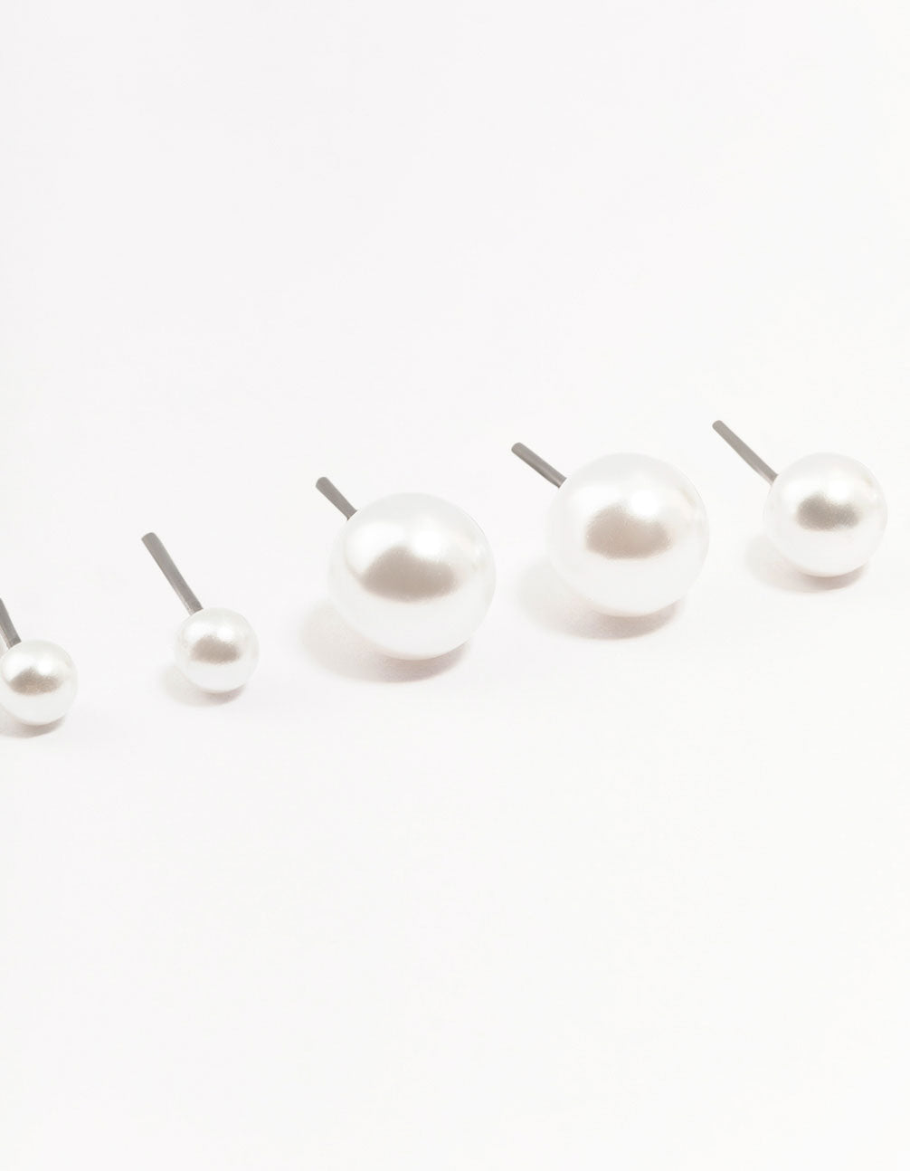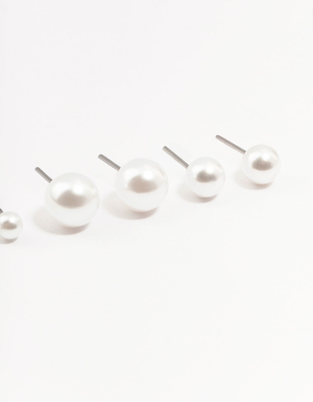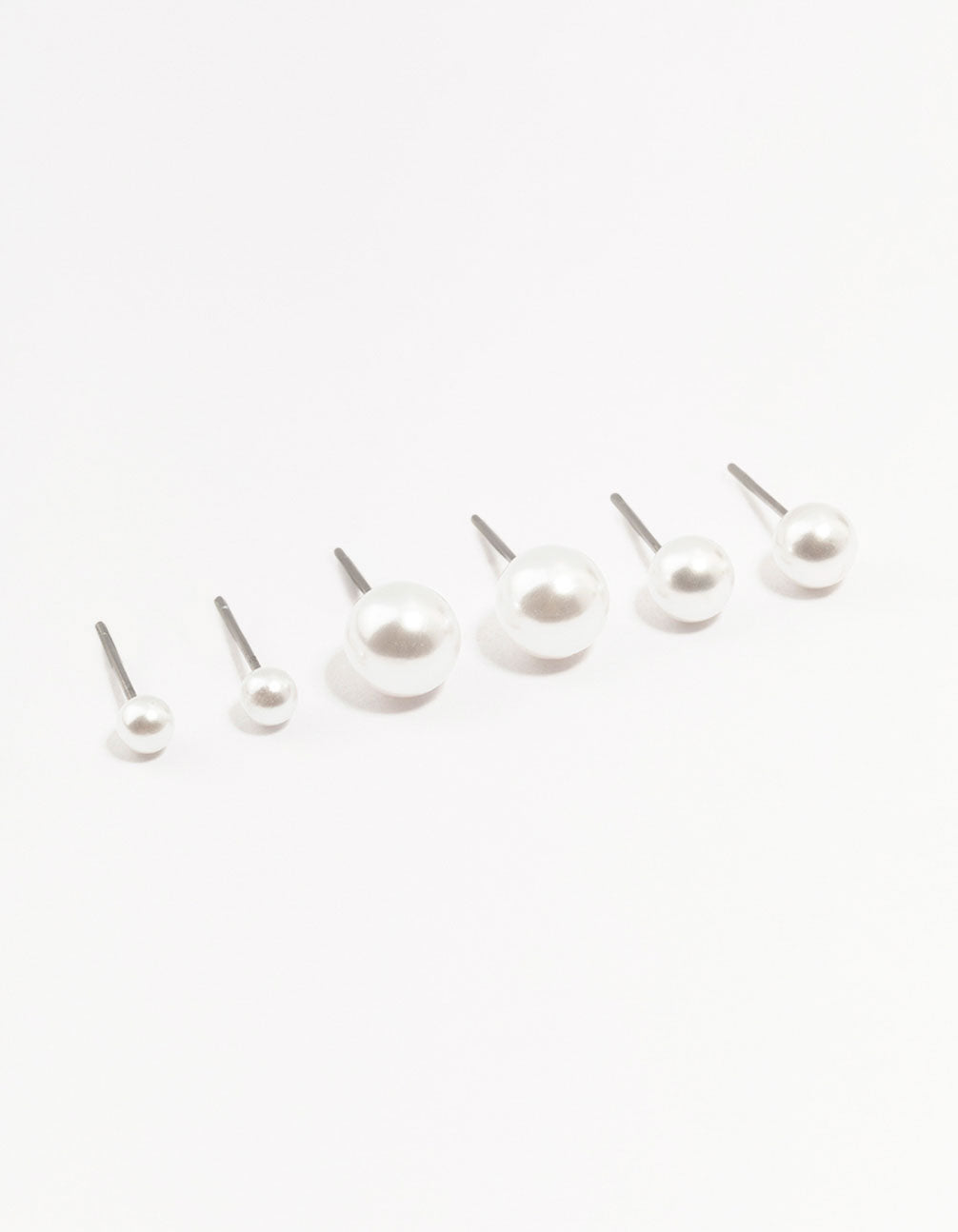 Beaded Multi Size Pearl Stud Earrings 3-Pack