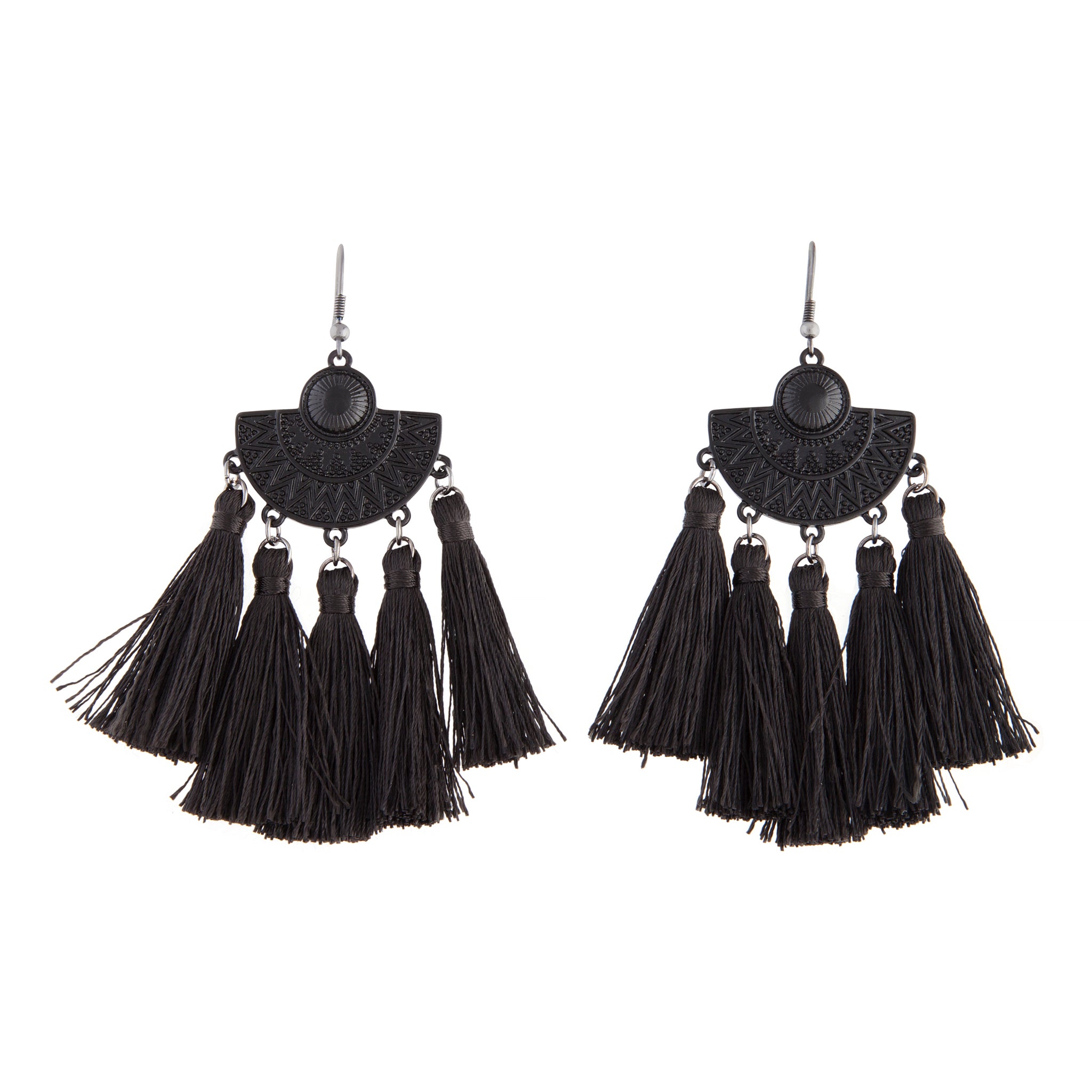• Black Coated Etched Shield 5 Tassel Earrings - link has visual effect only