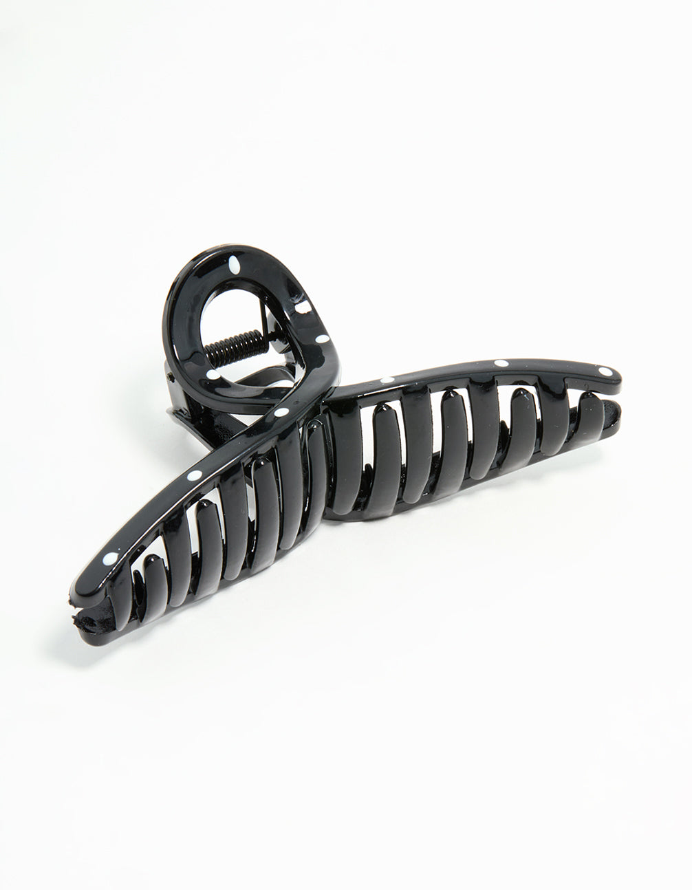 Make a chic statement with the Black & White Polka Dot Loop Claw Clip! This trendy claw clips adds a playful touch to any look. Perfect for taming unruly locks, wear it to class, out with friends, or to brunch.