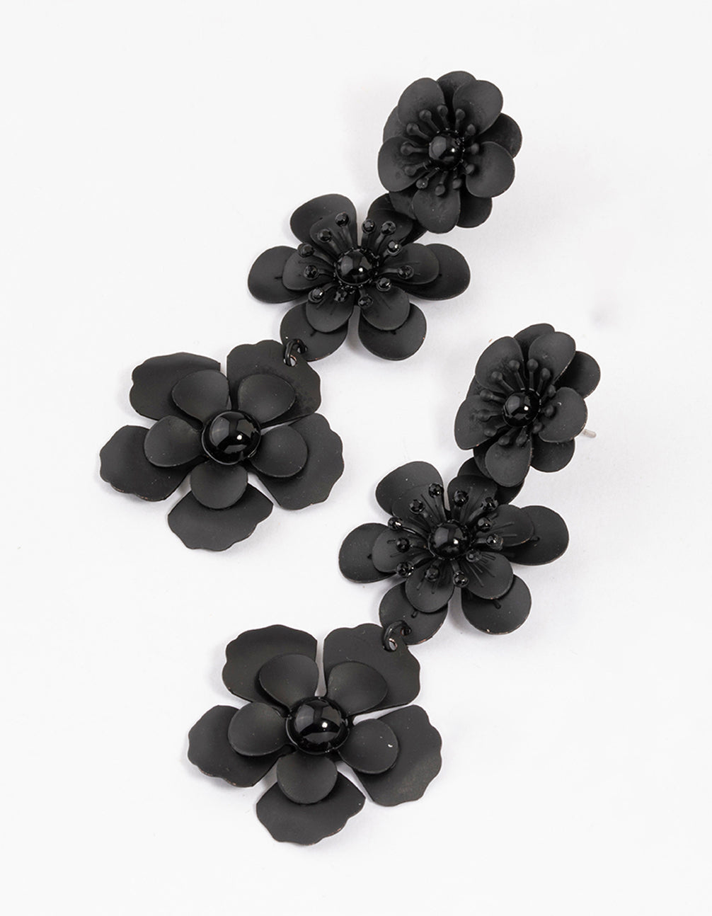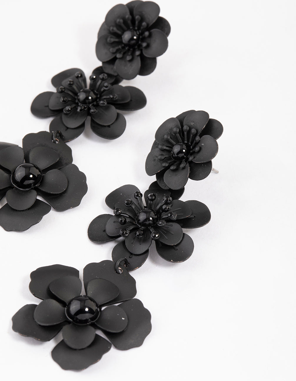 Coated Black Triple Diamante Flower Drop Earrings Coated Black Triple Diamante Flower Drop Earrings Coated Black Triple Diamante Flower Drop Earrings