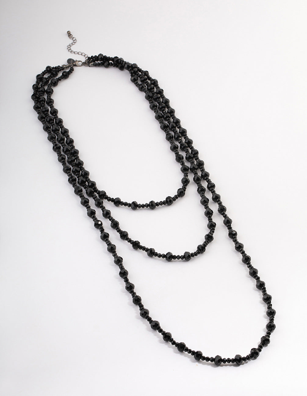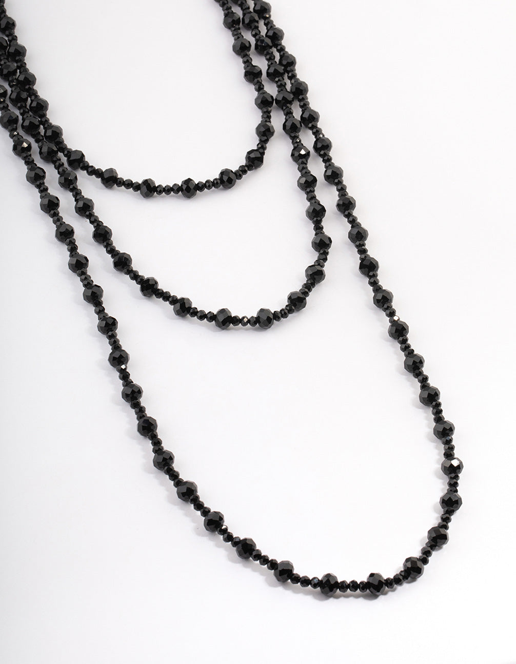 For an effortlessly chic look, explore pieces from our stylish 'Black on Black' Collection! Style this coated black, triple row necklace with a pair of black drop earrings for a dramatic edge.