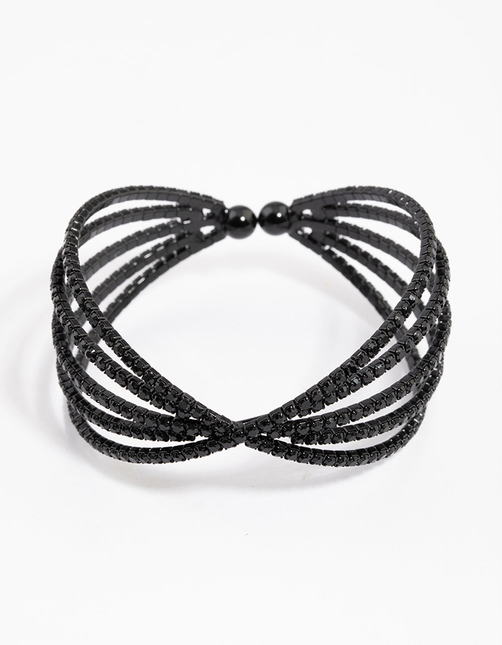Coated Black Triple Row Criss Cross Cuff Bangle