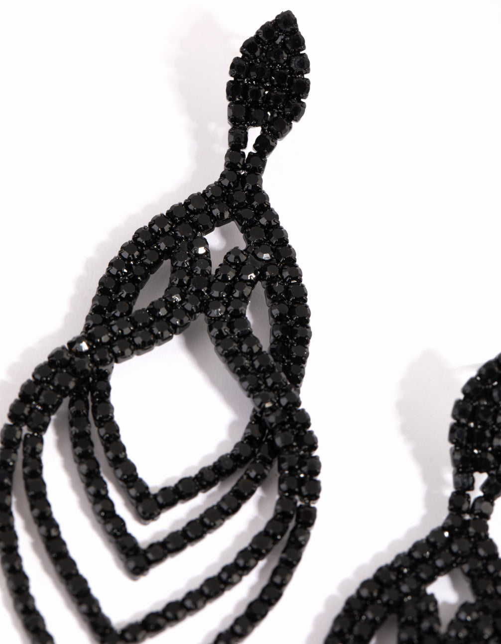 Be dark, be dramatic - black on black jewellery is here to make an impression! These bold earrings feature a glittering diamante design in a jet-black tone. Wear them with dark hues for a classic look, or embrace contrast and pair them with vivid colours.