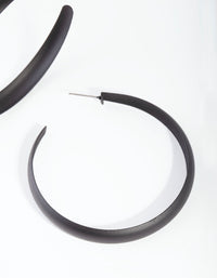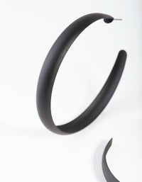 Turn heads in a pair of oversized hoop earrings. This chunky pair feature a coated metal design in a black. Style with black rings, sleek hair and a bold lip for a dramatic look.