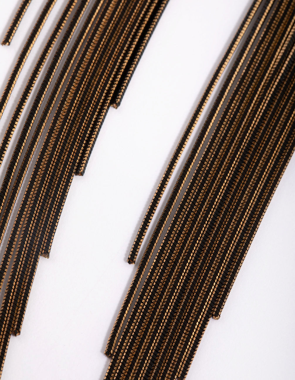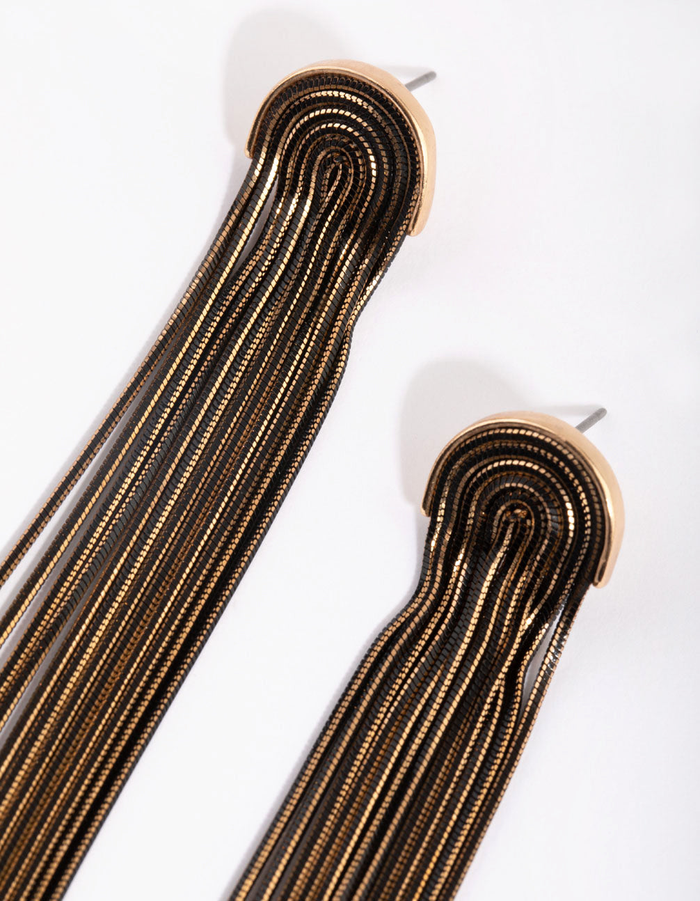 Make a statement with these stunning drop earrings! They're gold toned with black details. They feature a diamond-cut chain design arranged in a waterfall pattern. Simply divine!