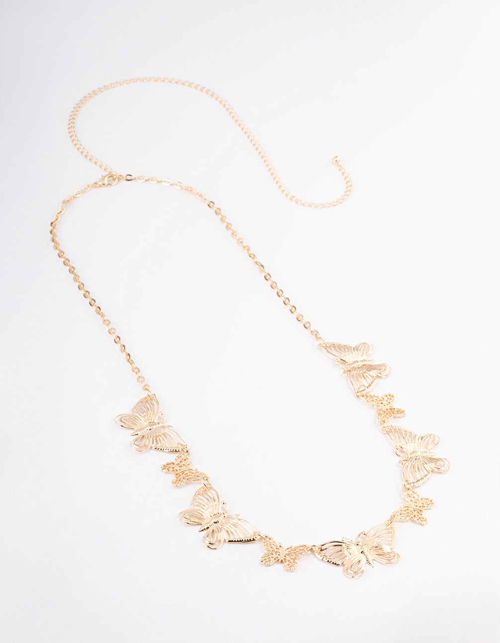 This waist chain features a gold-toned setting and butterfly charms for an on-trend look.