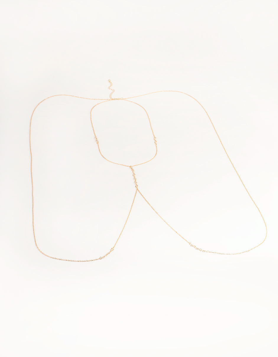 Style the latest fashion trend - waist and body chains! Our collection of versatile and chic body chains are perfect for adding an elevated touch to any outfit. Style yours with some adorning gold and pearl accessories to complete your look.