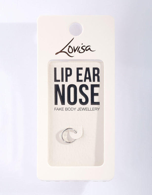 Trial and experiment with fake piercings; no needles necessary - just interchangeable style! This ring can be used for a faux lip, ear or nose piercing. Try layering varying sized hoops and faux styles to create the look of an on-trend 'ear stack'!