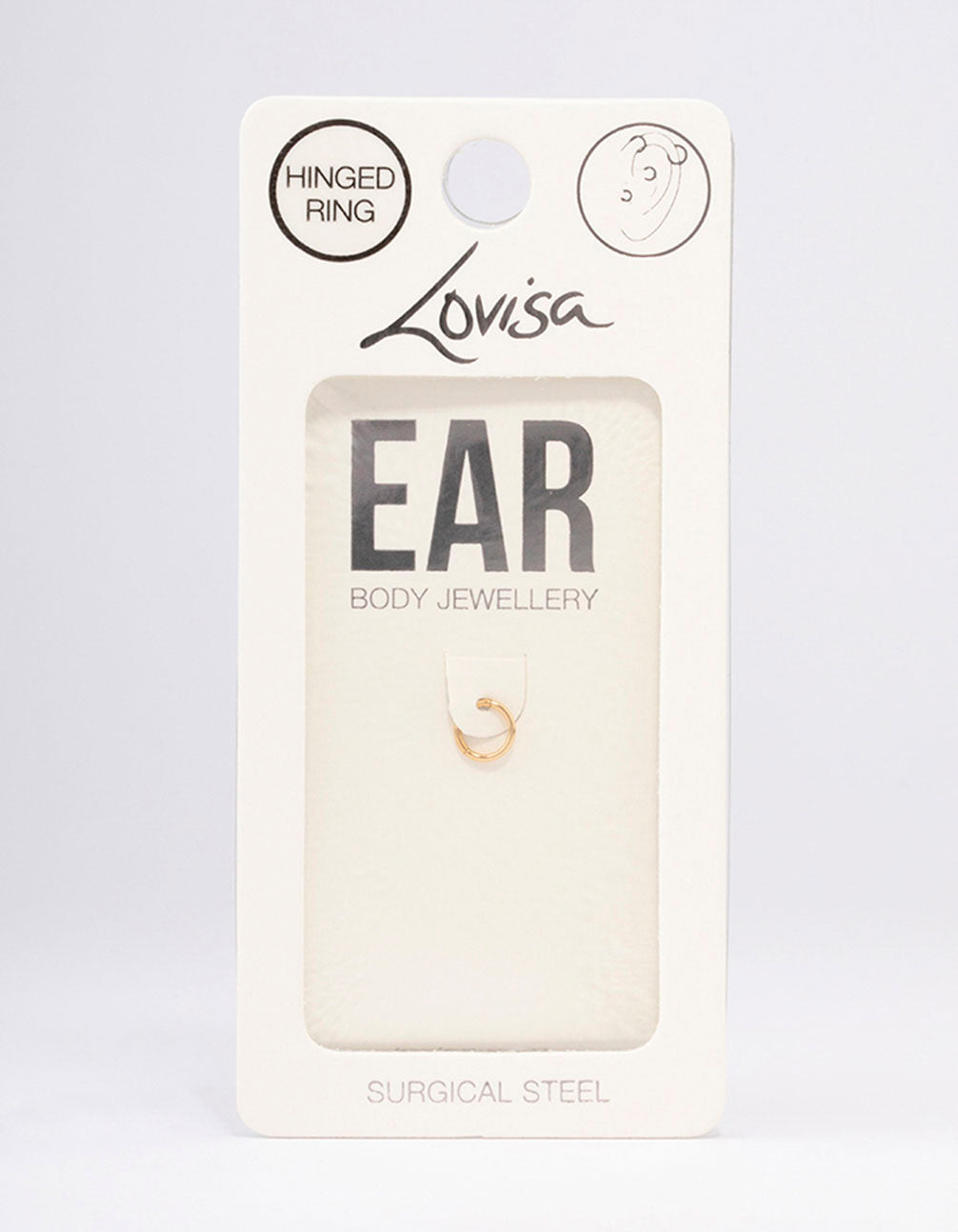 Our body jewellery is made with surgical steel, making it ideal for daily wear. This stunning clicker earring features a classic micro hoop design in a gold-tone. Cartilage earrings look great as helix, conch and tragus piercings. Wear the earring on it's own or stack multiple piercings with other gold designs (eg. hoops, huggies, studs etc.)