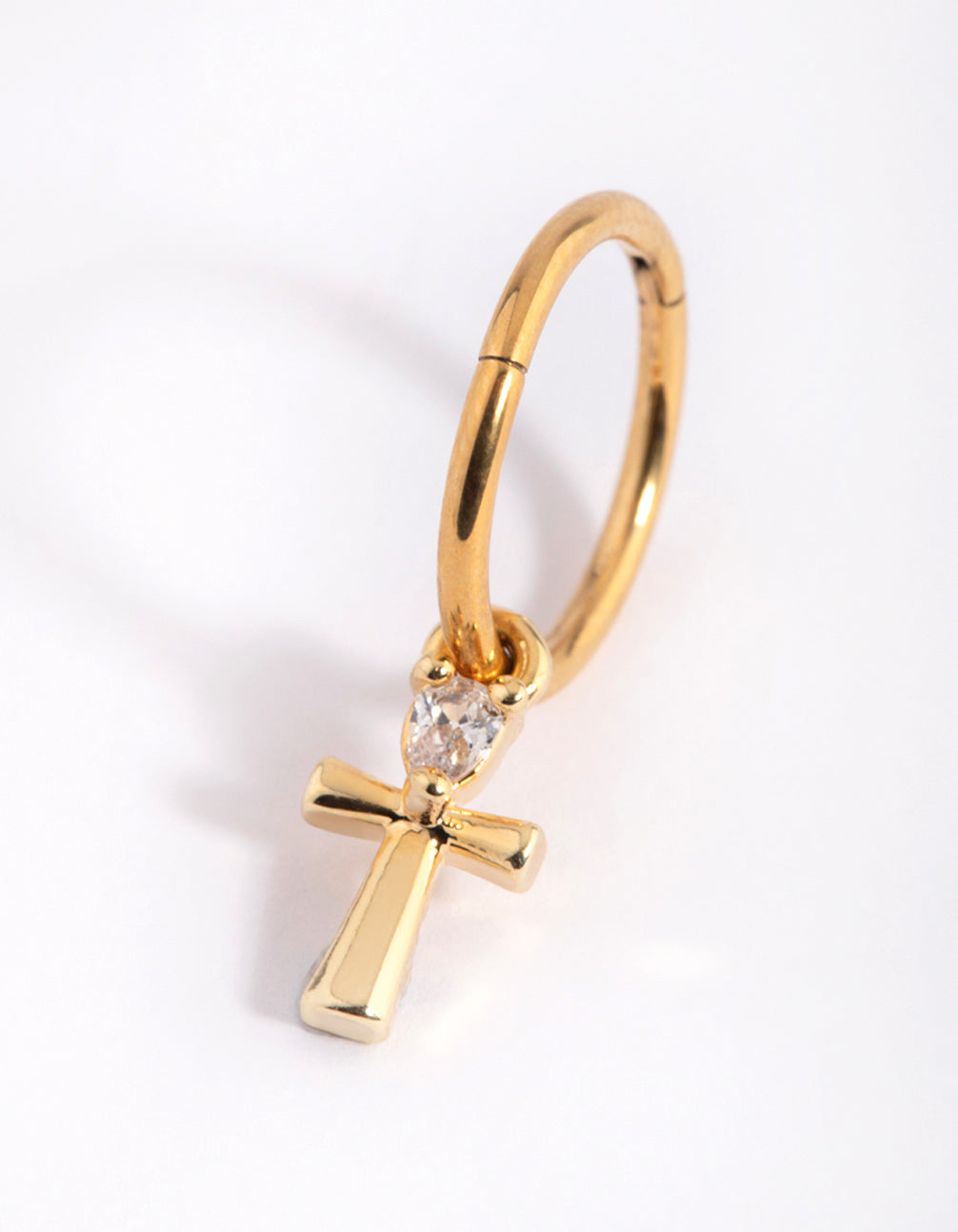 Gold Plated Surgical Steel Cubic Zirconia Cross Belly Ring