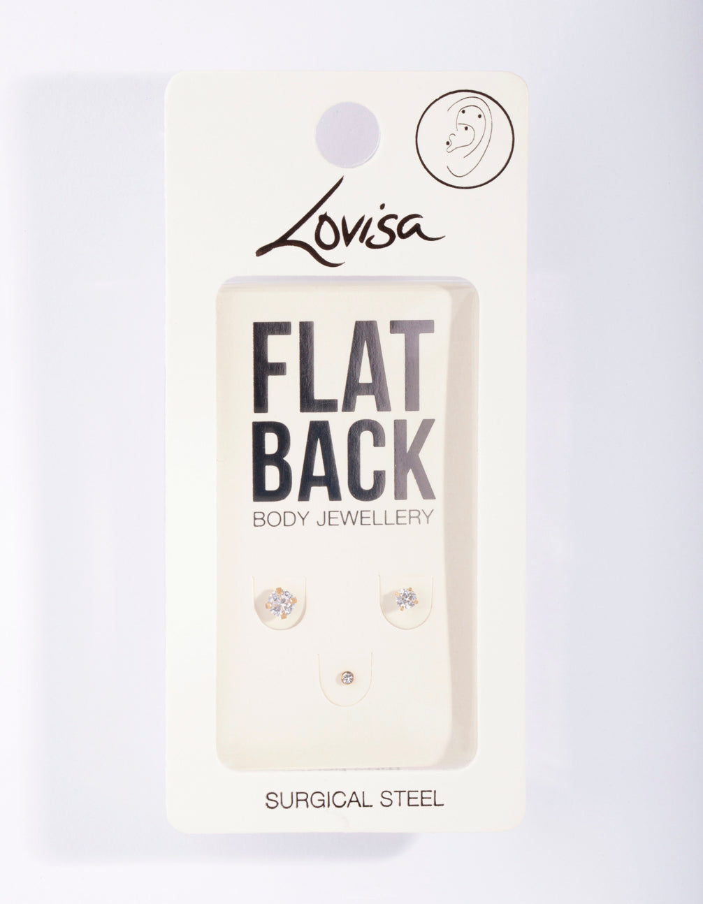 Lovisa body jewellery is made from surgical steel, making it perfect for daily wear. This stud pack features a gold-toned setting with cubic zirconia embellishments. Cartilage earrings look great as helix, conch and tragus piercings. Wear the earring on it's own or stack multiple piercings with other gold designs (eg. hoops, huggies, studs etc.)
