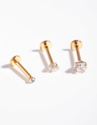 Gold Gradual Surgical Steel Cubic Zirconia Stud Pack