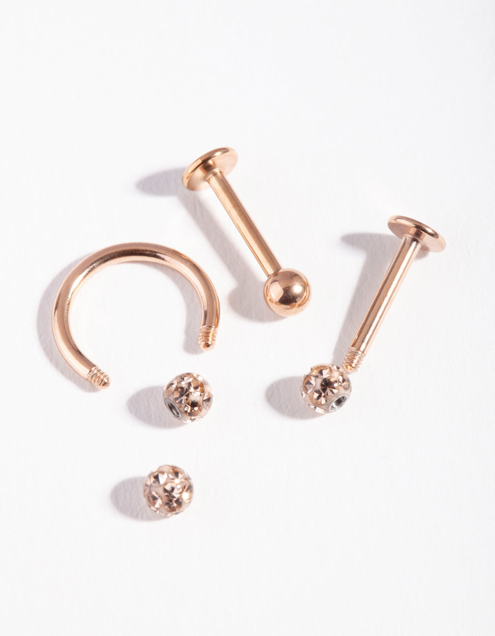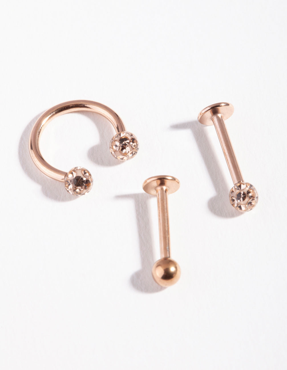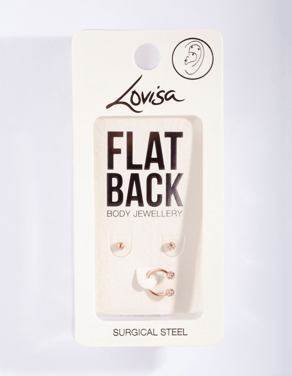 Elevate your ear stack with this flat back ear pack, featuring a variety of rose gold-toned disco designs. This style is made from surgical steel, making it ideal for daily wear.