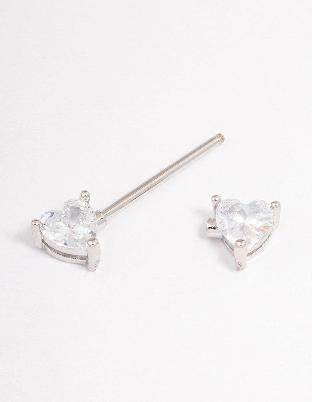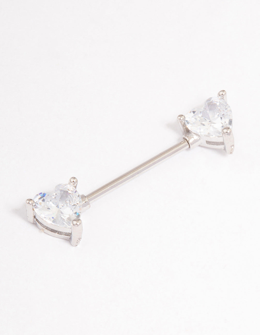 Surgical Steel Cubic Zirconia Double Heart Nipple Piercing