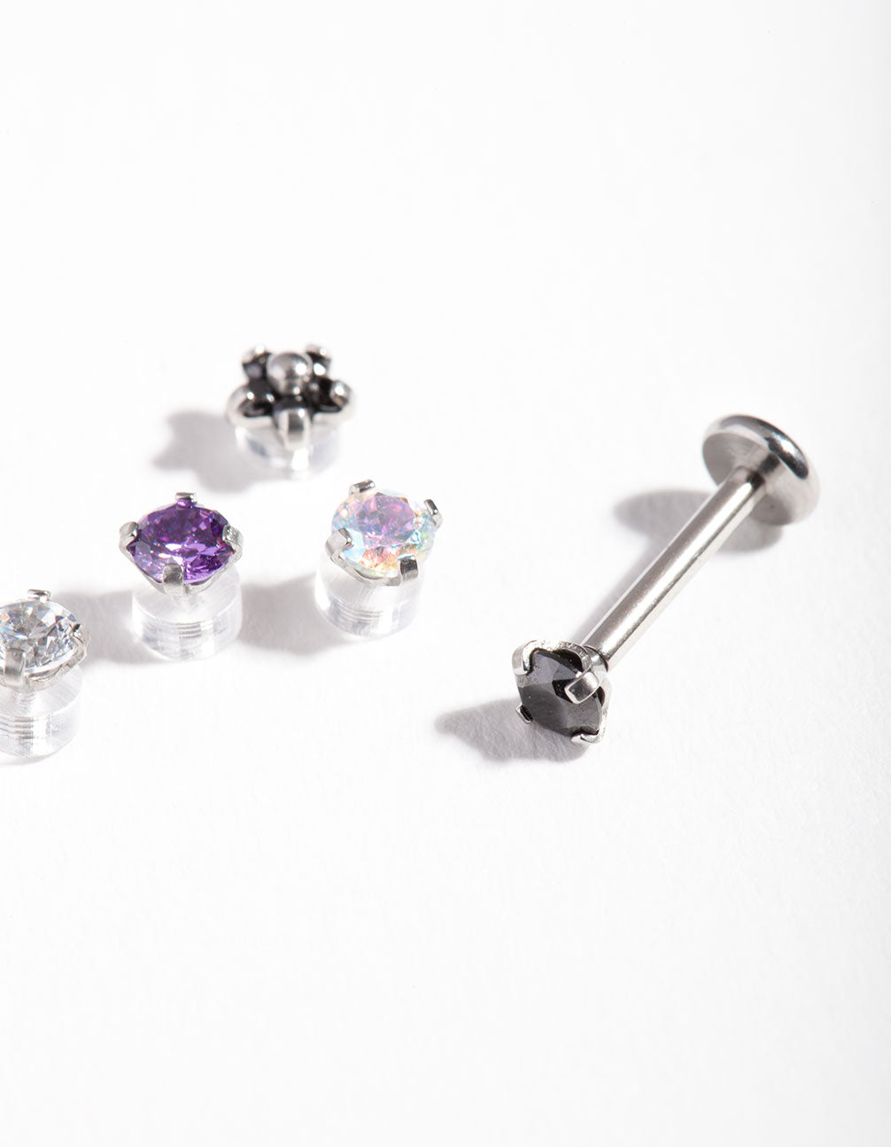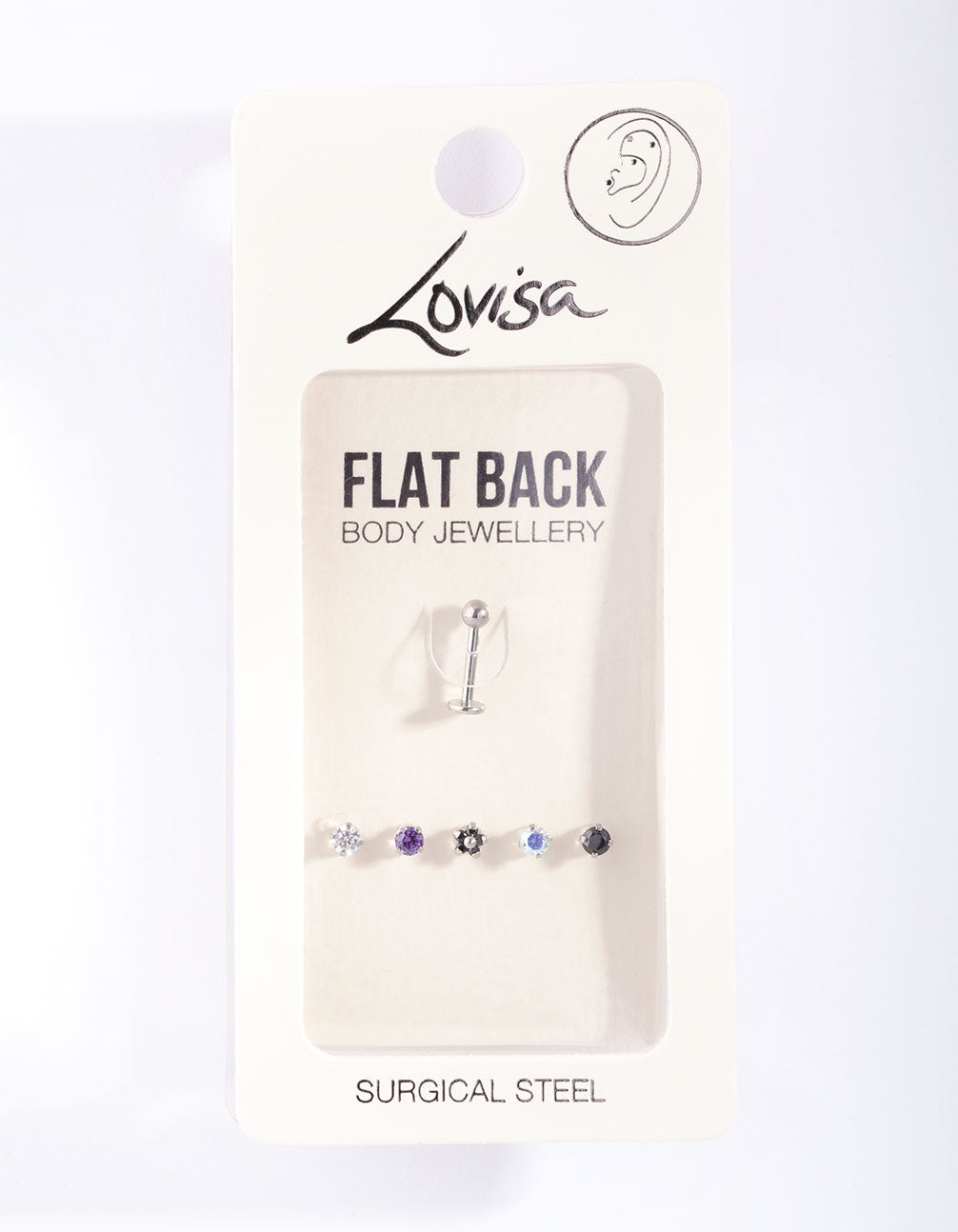 Switch up your style effortlessly with this Surgical Steel Single Flat Back Bar & Interchangeable Ends Pack. This versatile jewellery set includes one durable surgical steel flat back bar paired with six dazzling screw-on cubic zirconia crystal ends, giving you endless options to customise your look. The flat back design ensures comfort, making it perfect for everyday wear in piercings like helix, tragus or lobe.