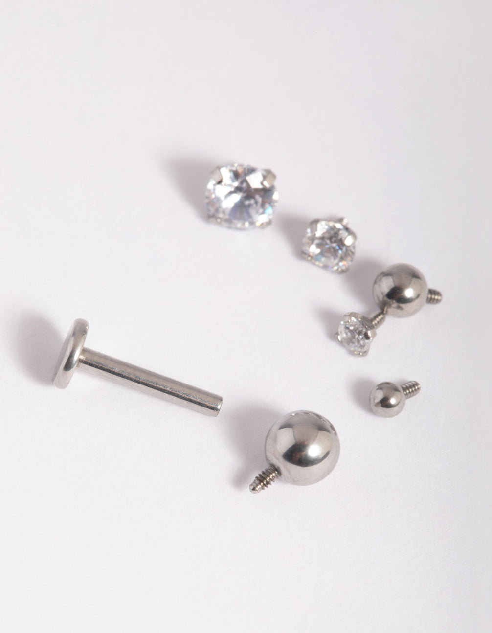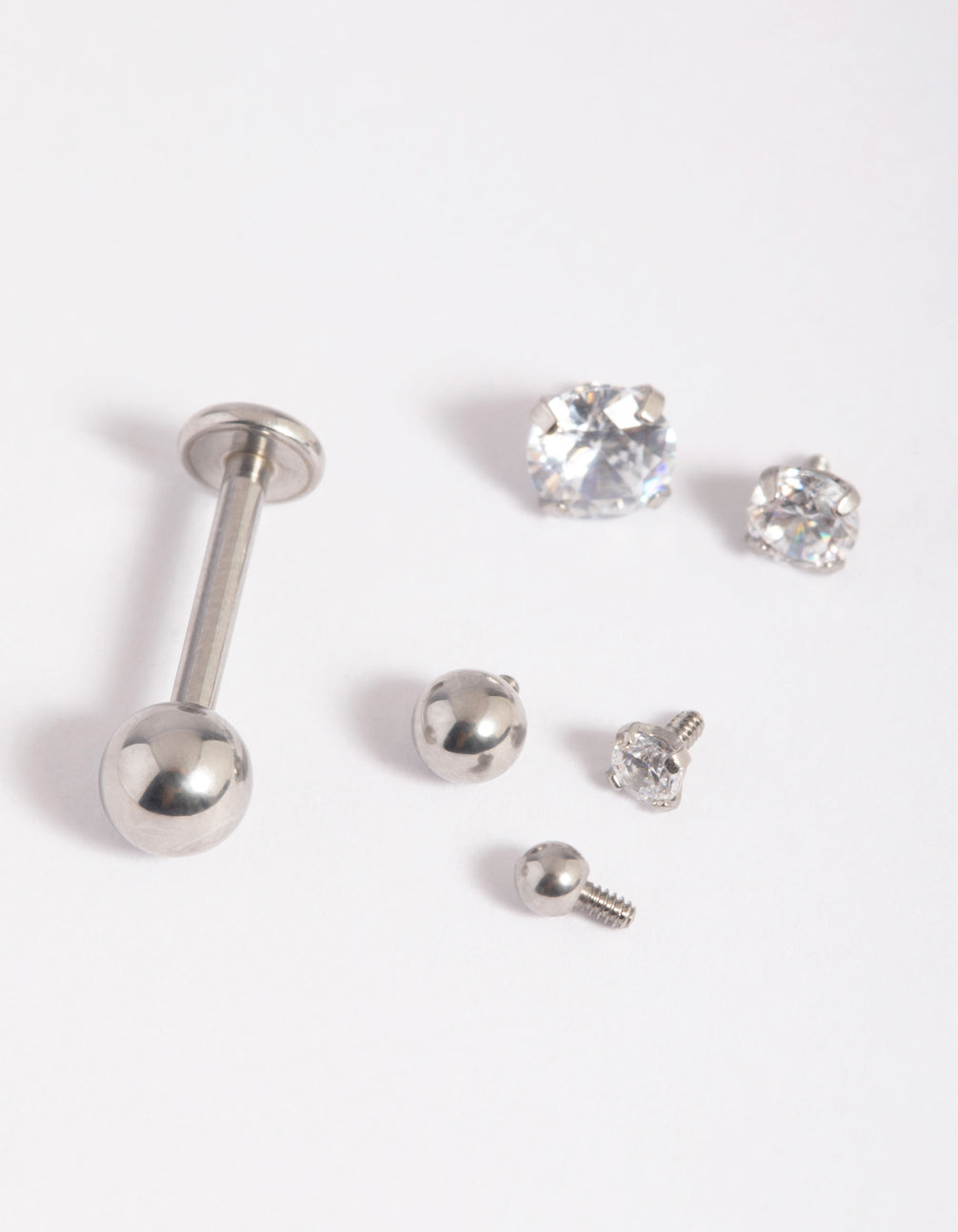 Switch up your style effortlessly with this Surgical Steel Single Flat Back Bar with Interchangeable Cubic Zirconia & Polished Interchangeable Ends Pack. This clever jewellery set includes one durable surgical steel flat back bar and six interchangeable screw-on ends, giving you endless versatility in one sleek design. From shimmering cubic zirconia crystals to polished finishes, you can mix and match to create a look that’s uniquely yours.