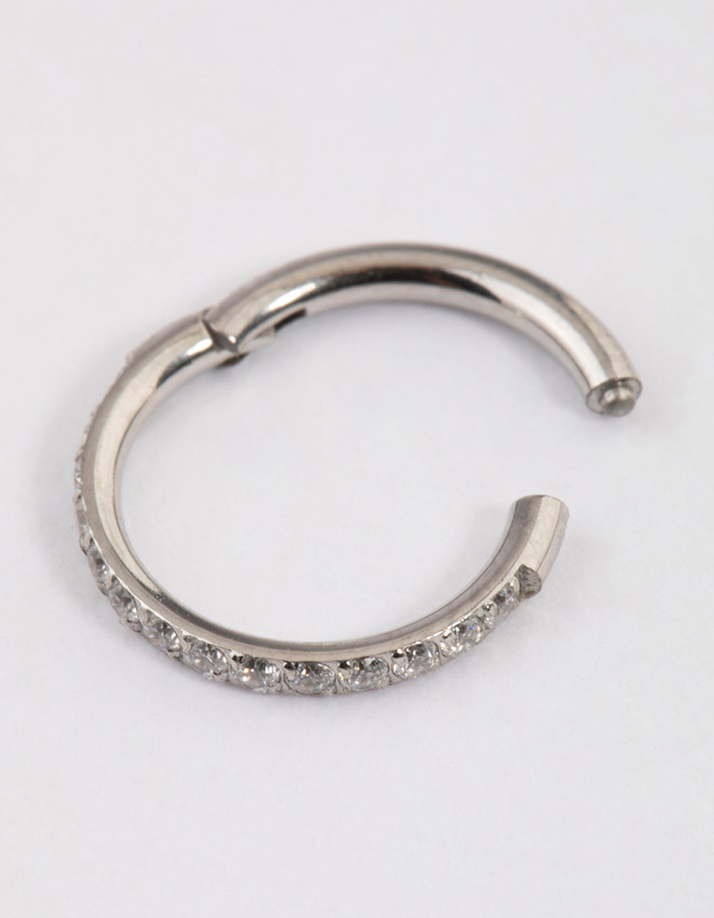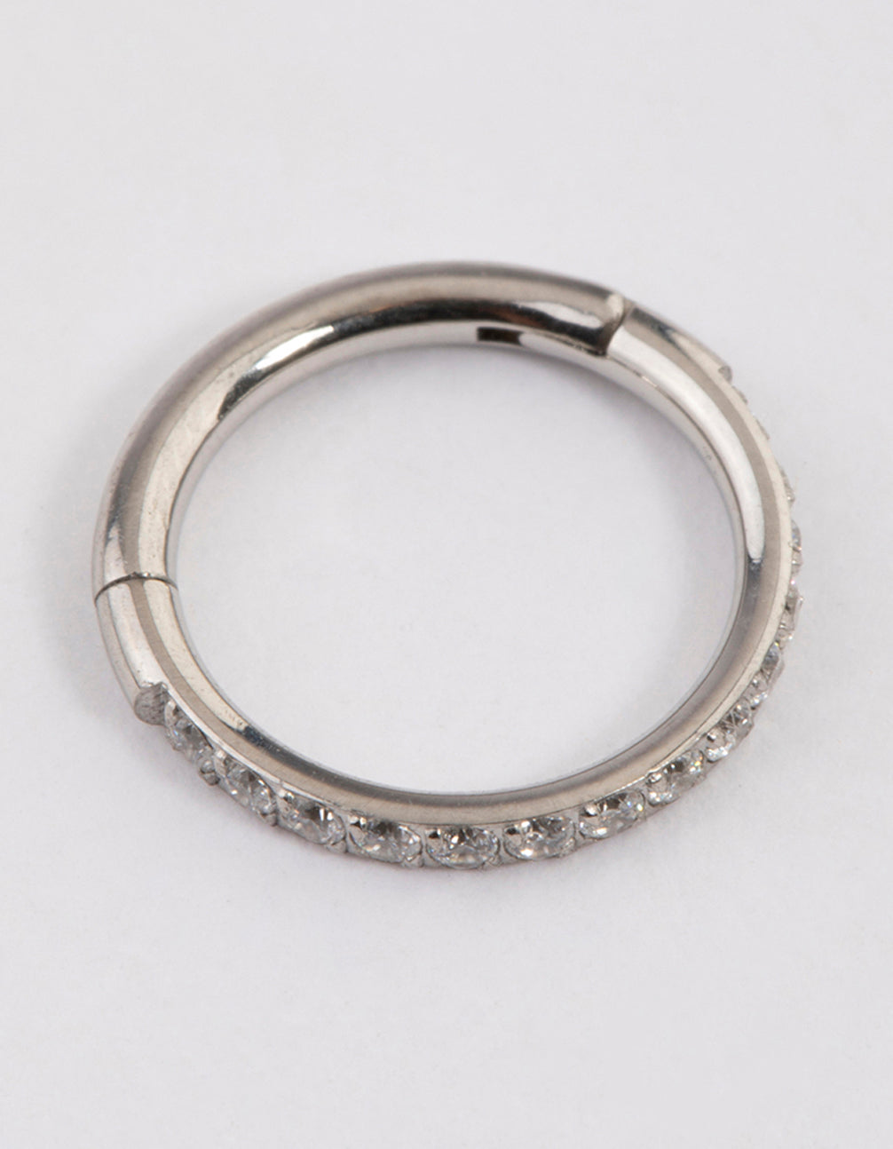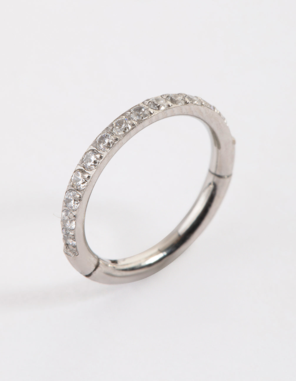 Fill your jewellery box with piercing staples, like this Surgical Steel Fine Pave Band Clicker Ring.