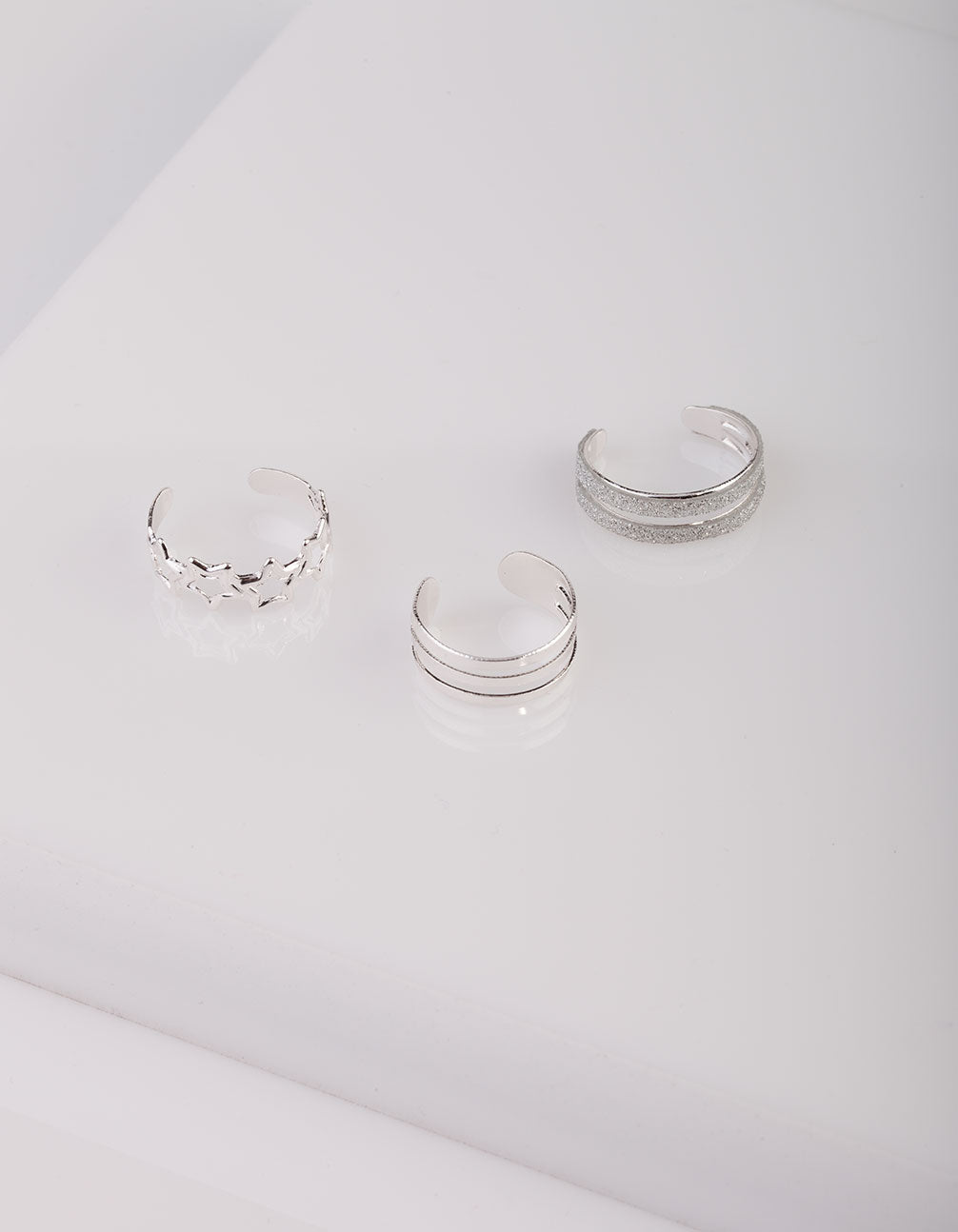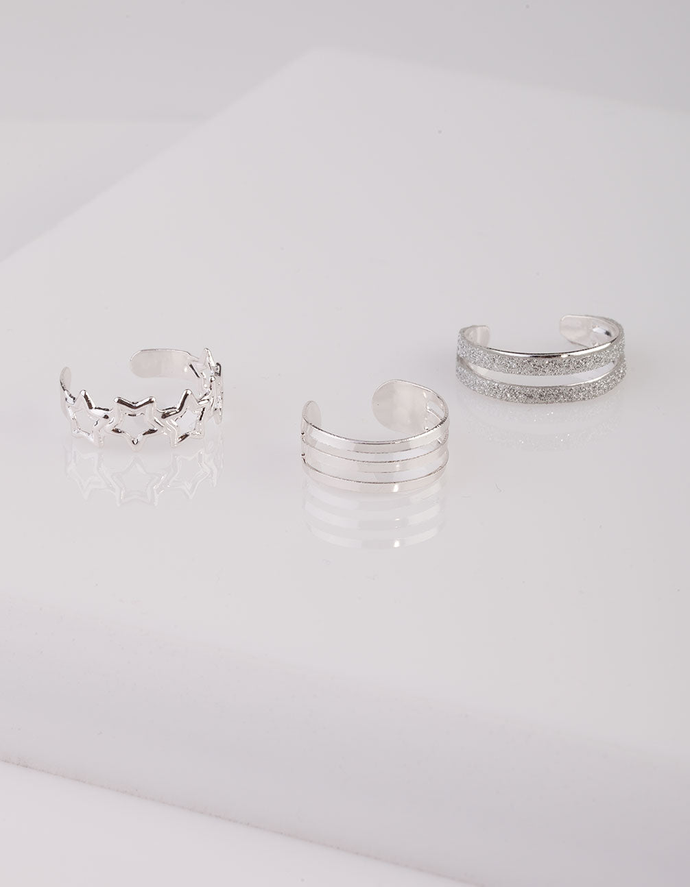Silver Glitter Star Toe Ring Pack