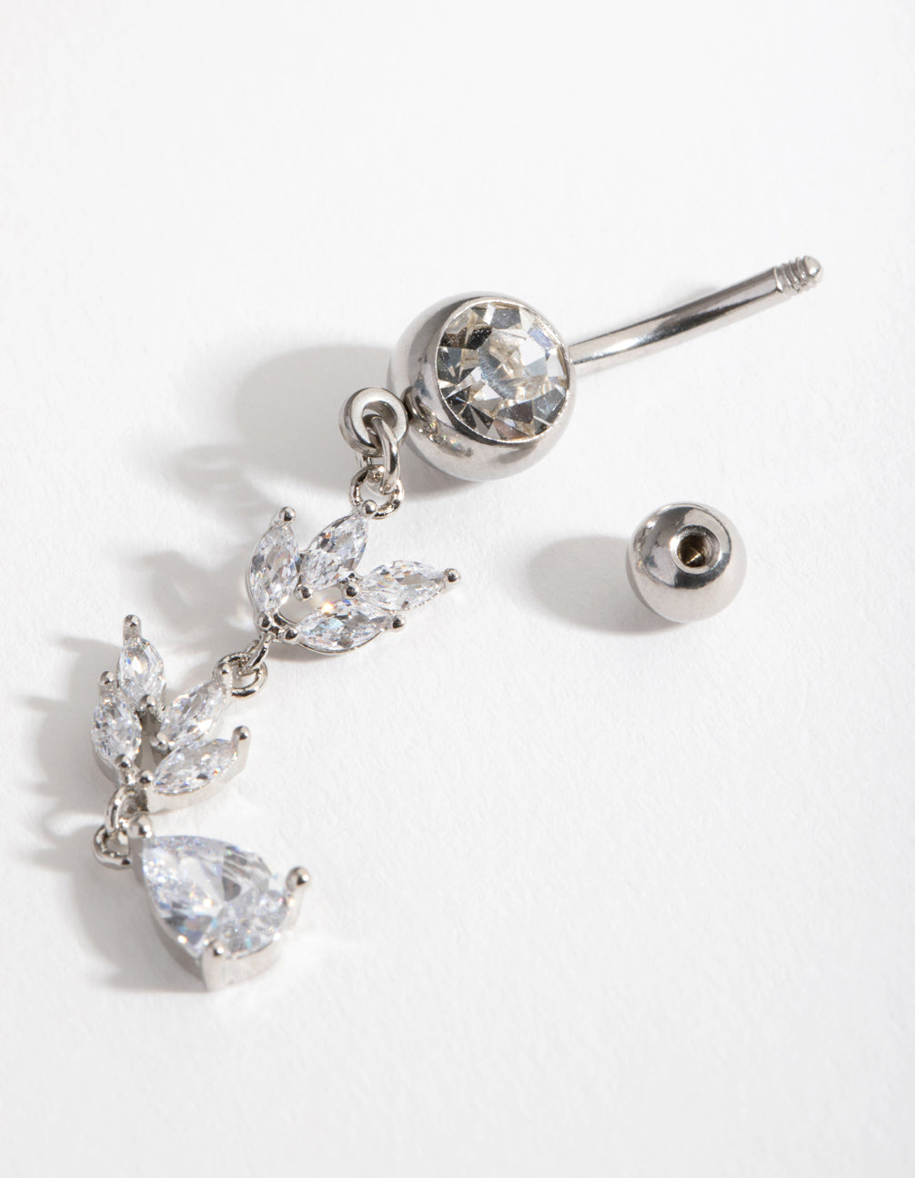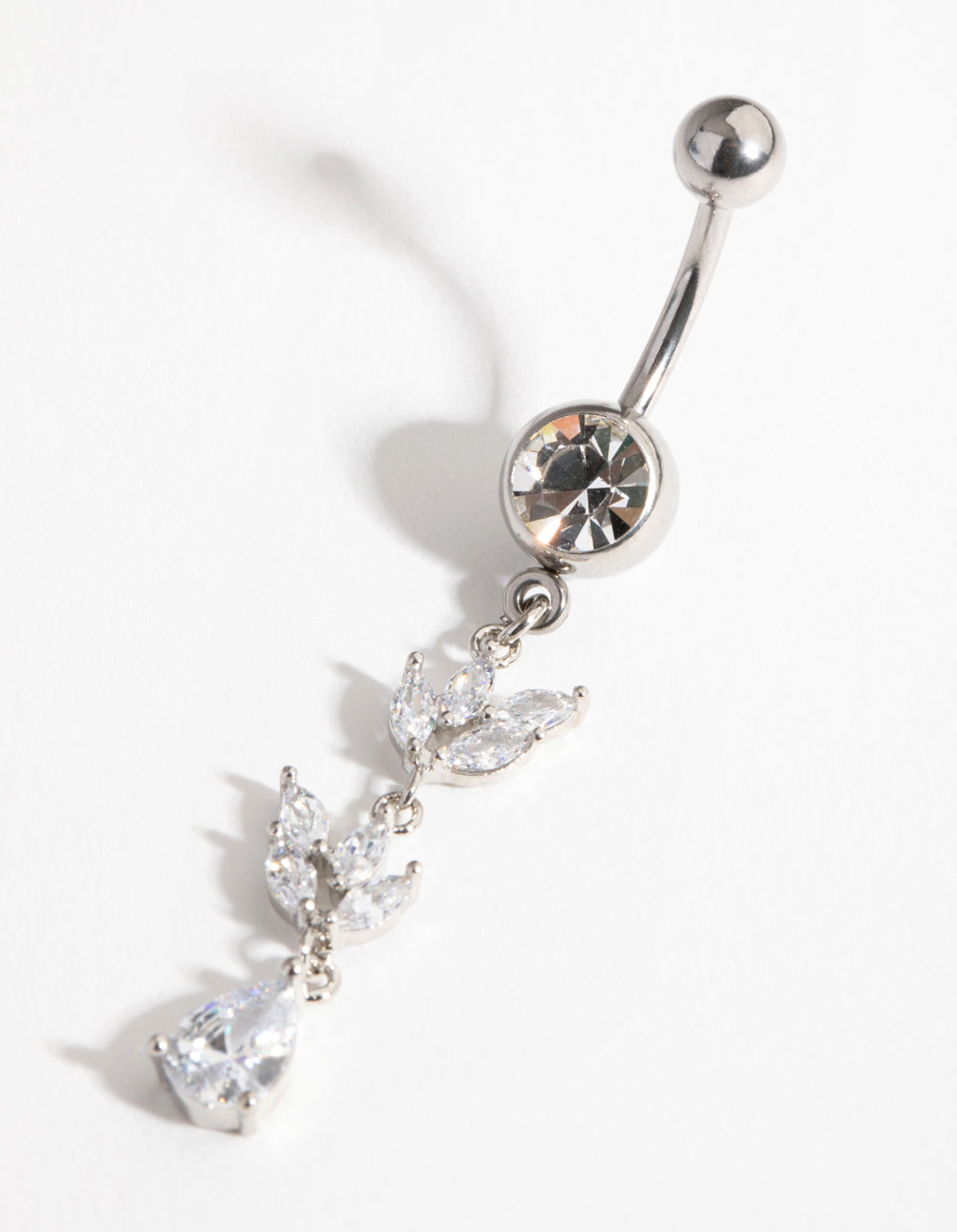 Surgical Steel Cubic Zirconia Marquise Drop Belly Ring