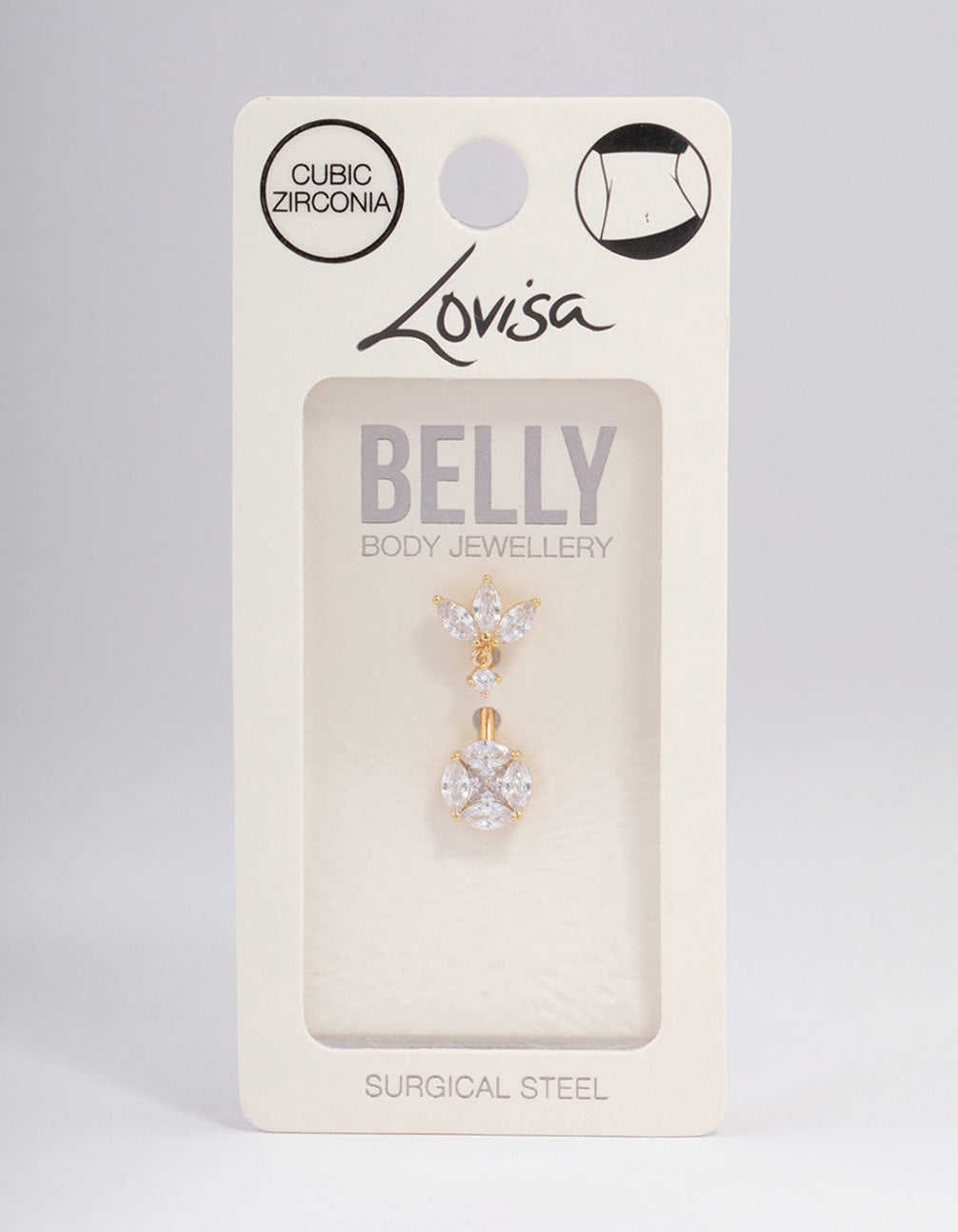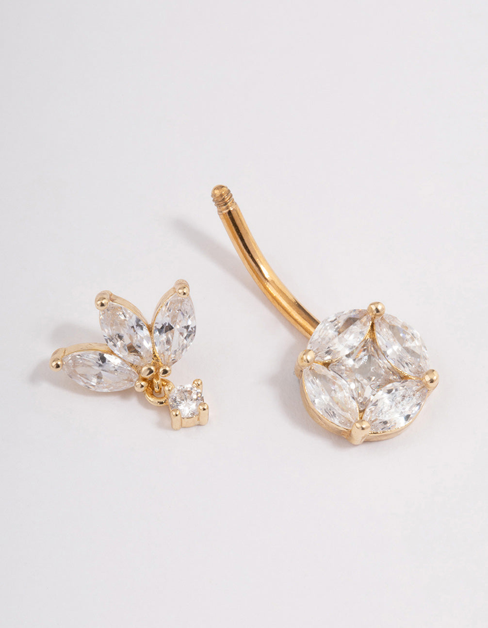 Gold Plated Surgical Steel Cubic Zirconia Triangular Fan Belly Ring