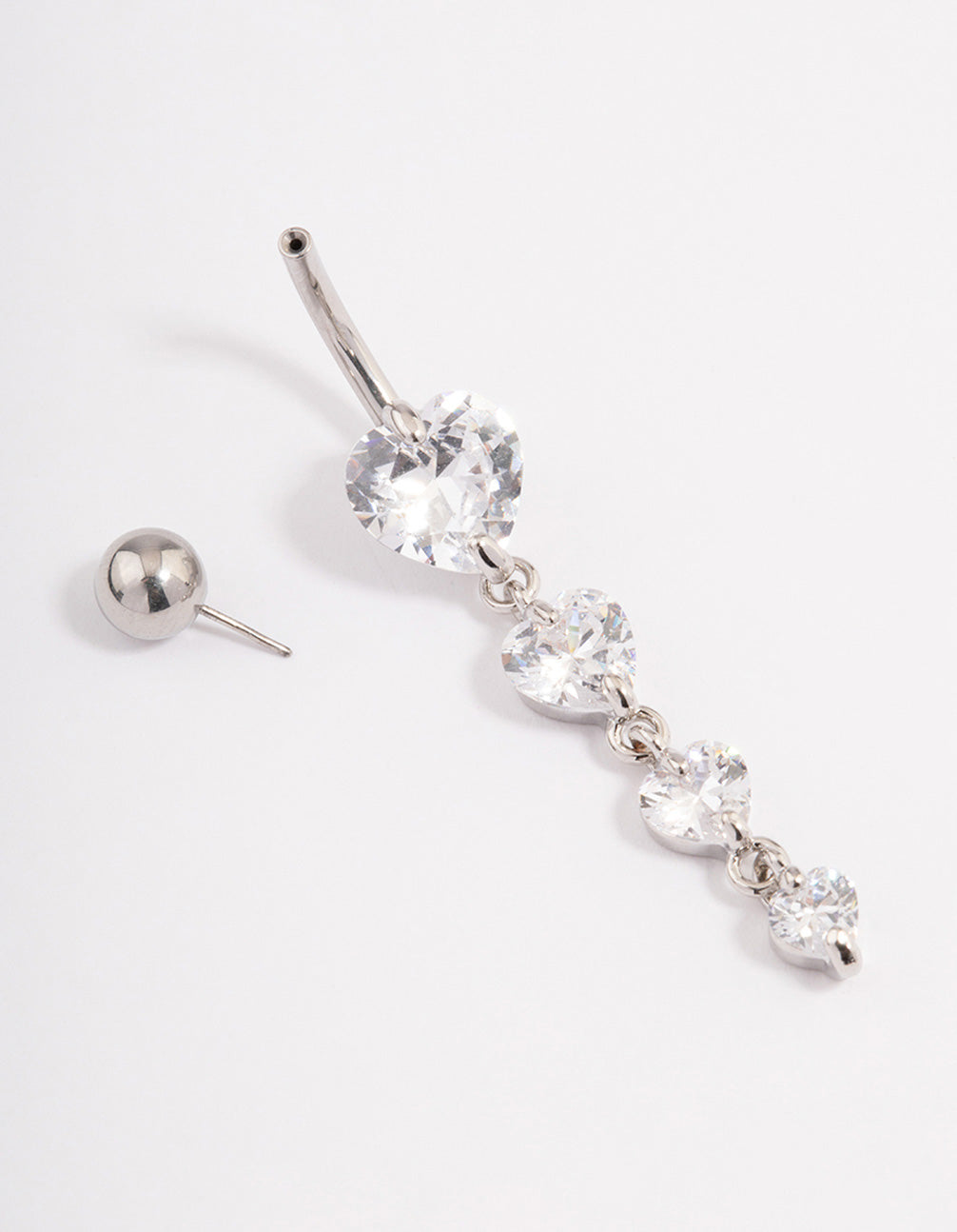 Surgical Steel Cubic Zirconia Hearts Threadless Belly Bar