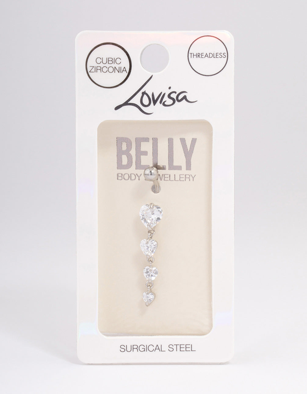 Invest in quality piercing jewellery that's perfect for everyday wear. Crafted from genuine surgical steel, jewellery from our Belly Body Packs Collection is durable, long-lasting and safe for sensitive skin. This belly bar features 4 cubic zirconia hearts for a charming touch. This belly bar features a threadless style, for a secure fit and also makes it easier for stud to be removed.