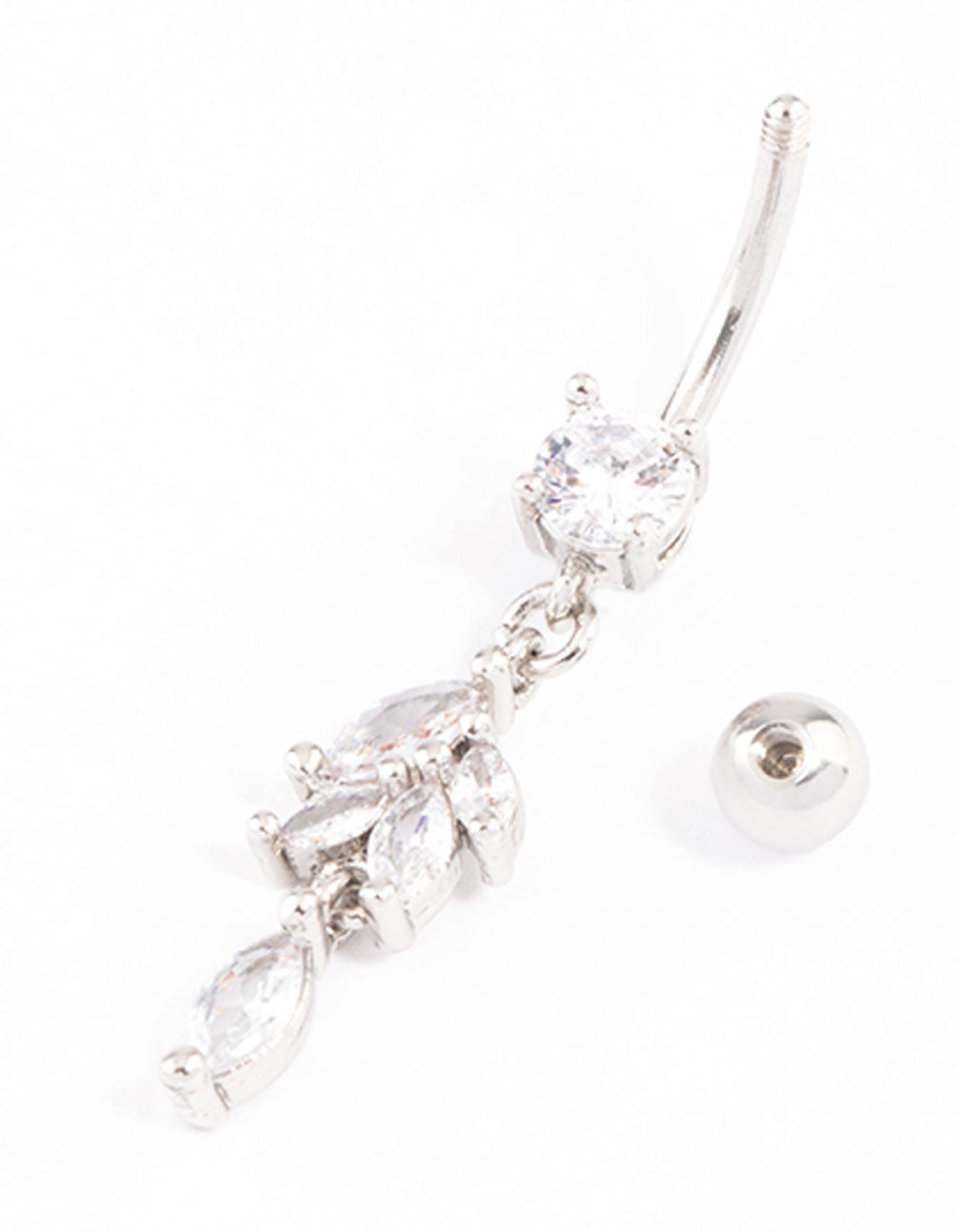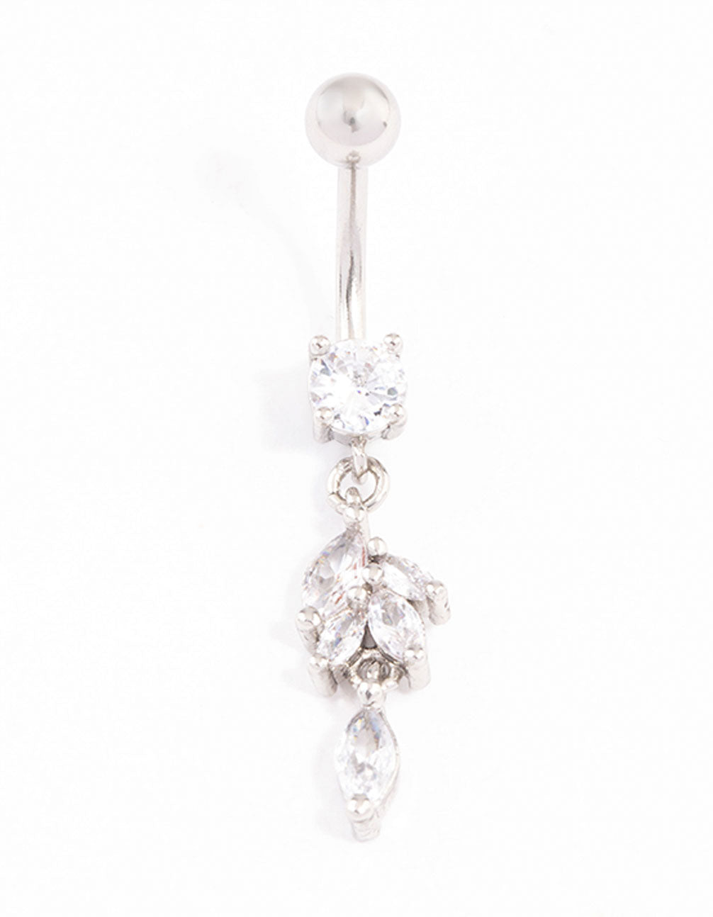 Surgical Steel Navette Cubic Zirconia Drop Belly Ring