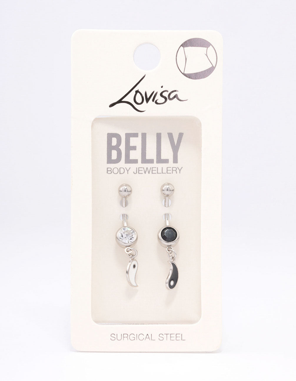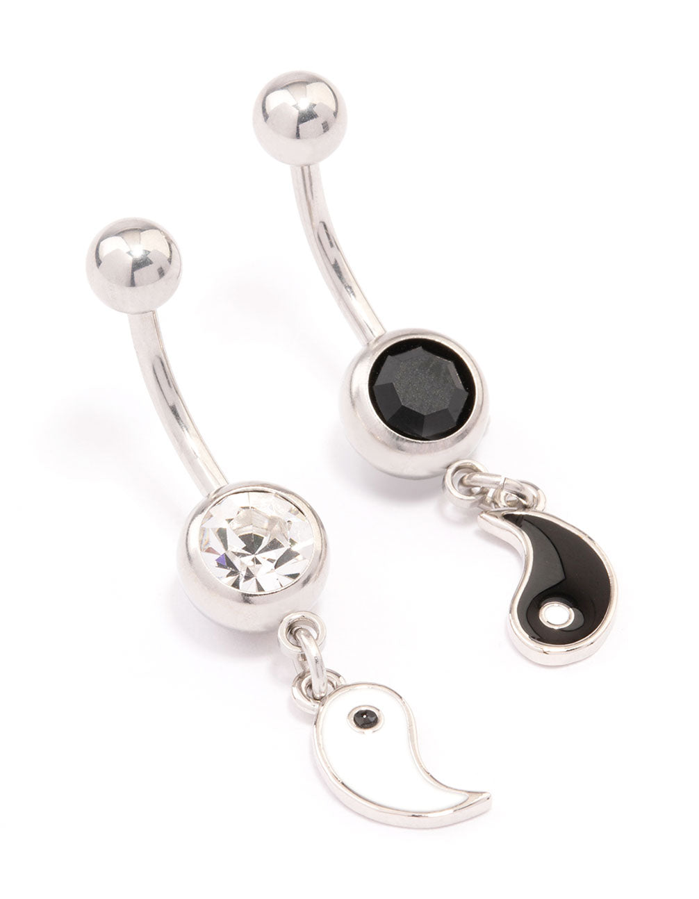 Surgical Steel Yin & Yang Drop Belly Ring Pack