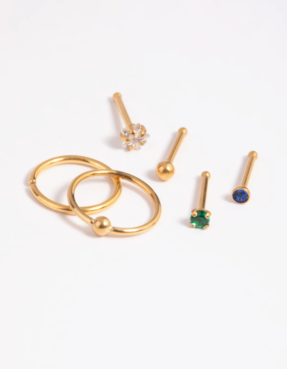 Show off your individuality with Lovisa body jewellery! Our premium body jewellery is made with quality titanium to avoid skin irriation and ensure pieces are comfortable for day-to-day wear. This pack features mulitple nose studs. They measure 20G/0.8mm.