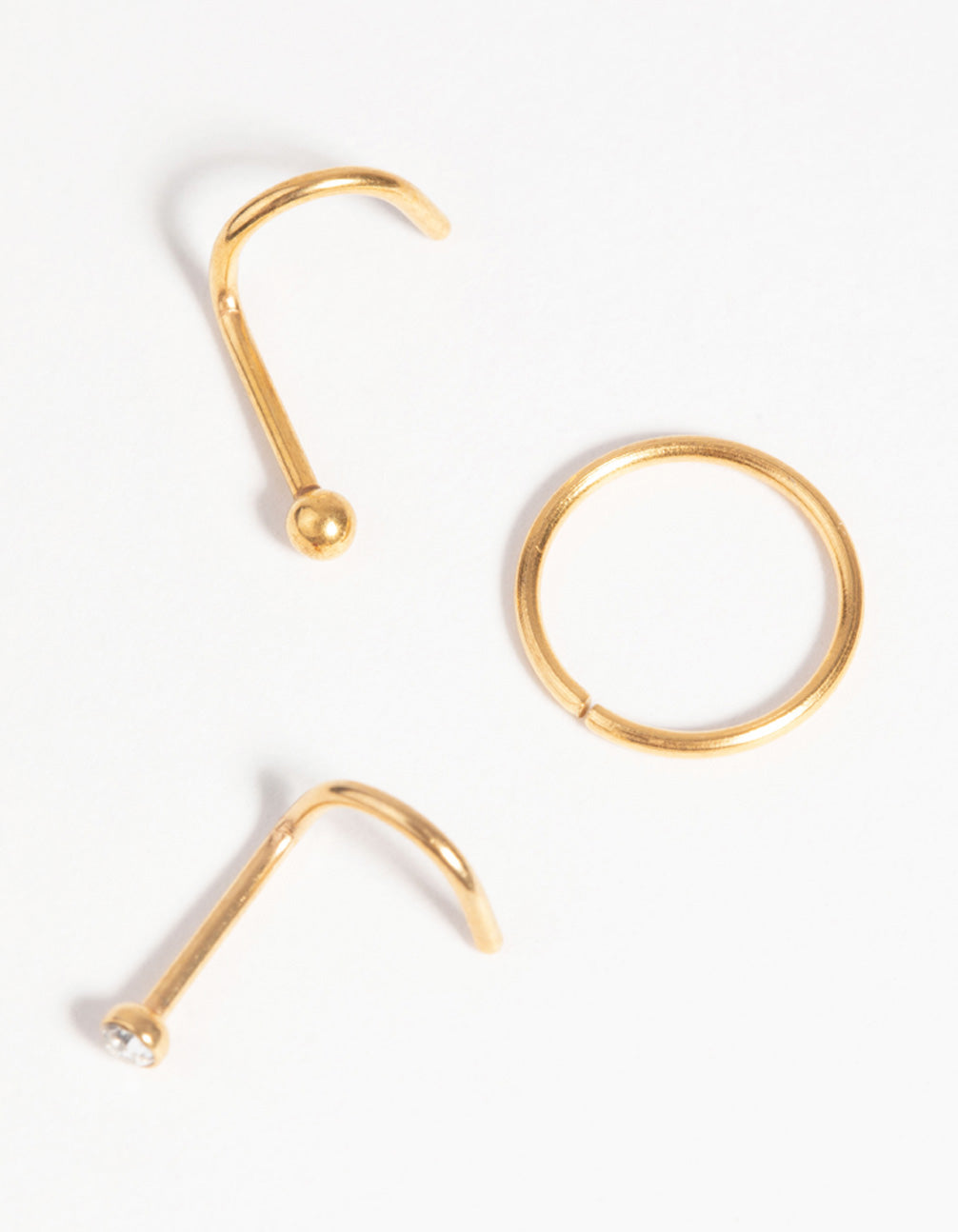 Gold-Plated Surgical Steel Nose Stud & Ring Pack