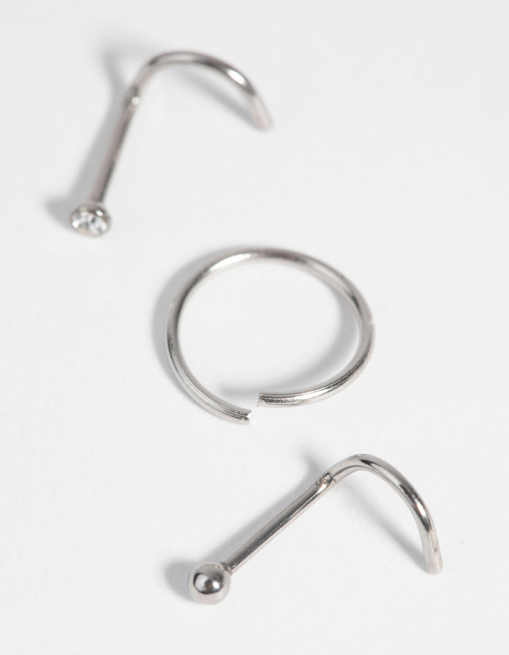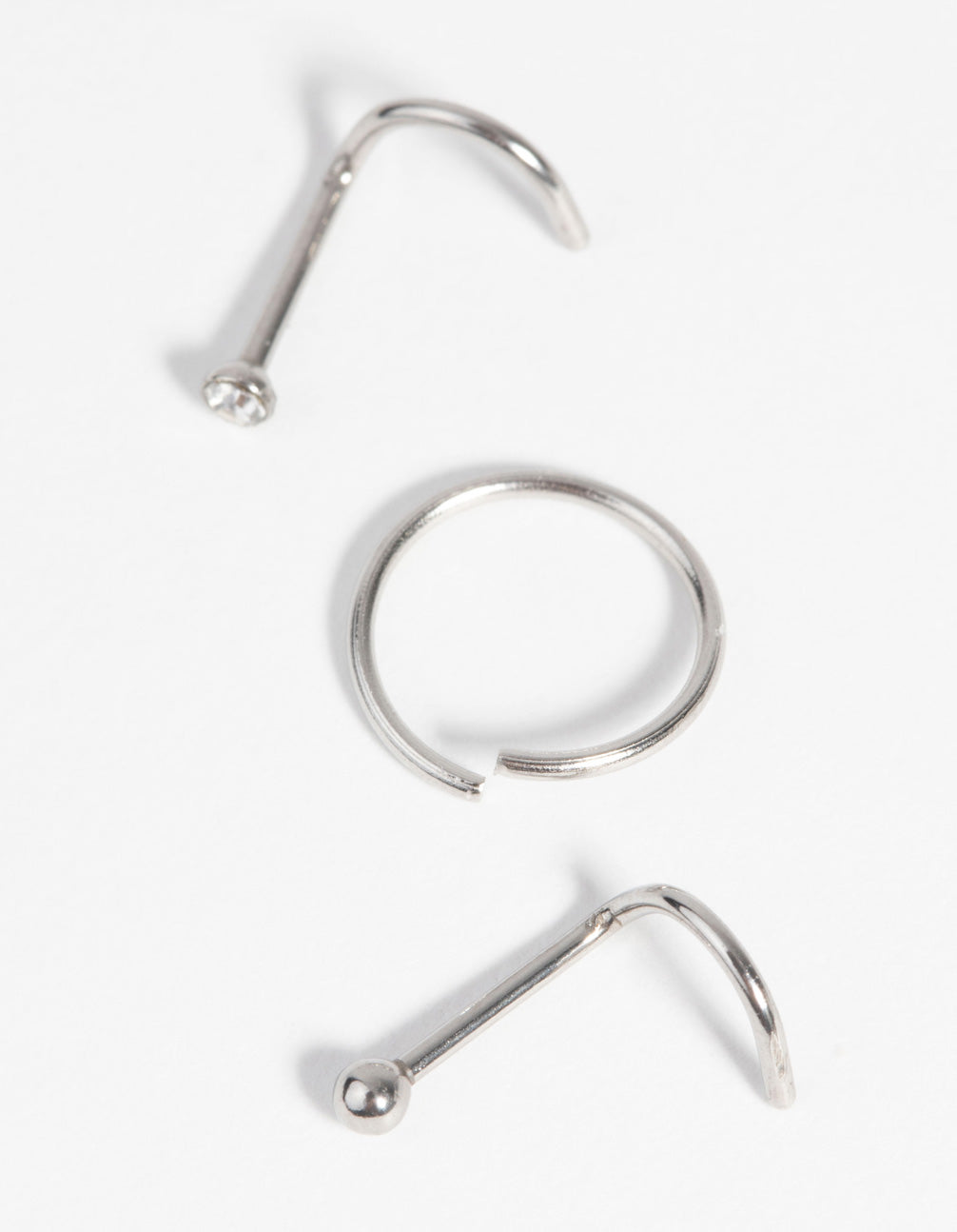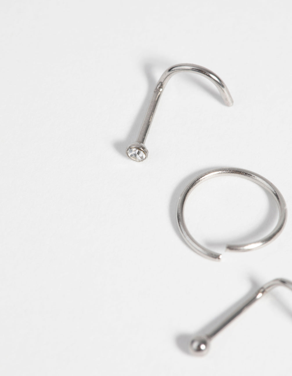Surgical Steel Nose Stud & Ring Pack with Diamantes